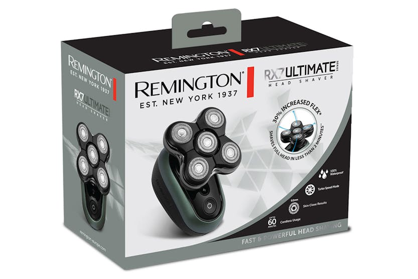 Experience the ultimate head shaving experience with the Remington RX7 Ultimate Head Shaver. This innovative shaver features 5x cutting heads for maximum contact and quick results, dual track blades that shave hair to as short as 0.2mm, and a Turbo Speed Function for denser hair growth. With up to 60 minutes of cordless runtime, flexing blades, a pop-up trimmer, and an LED fuel gauge indication, this shaver is designed to make head shaving effortless and convenient. Upgrade your grooming routine with the Remington RX7 Ultimate Head Shaver today.