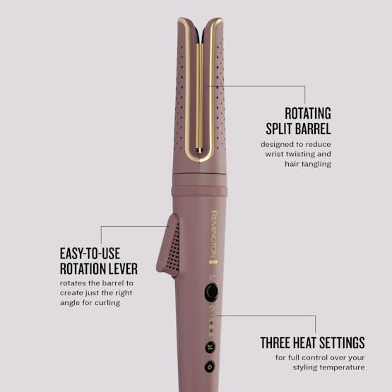 Achieve effortlessly defined curls with the Remington Rotating Curling Wand | CI8930. Featuring gentle, anti-static ionic air technology and heat activated micro-conditioners, this innovative tool ensures smooth curls with all-day frizz protection. The rotating split barrel and ultra-smooth ceramic plates make styling easy and efficient, while the adjustable heat settings allow for customizable results based on your hair type and desired look. Say goodbye to wrist twisting and hello to beautifully styled hair with the Remington Rotating Curling Wand. Experience frizz-free styling with the Remington Rotating Curling Wand | CI8930. The ionic air technology cools hair instantly, while the heat activated micro-conditioners and anti-frizz formula ensure long-lasting, smooth curls. With the rotating split barrel and easy-to-use rotation lever, creating bouncy curls or loose waves has never been simpler. Take control of your styling routine with the Remington Rotating Curling Wand and enjoy salon-quality results from the comfort of your own home.