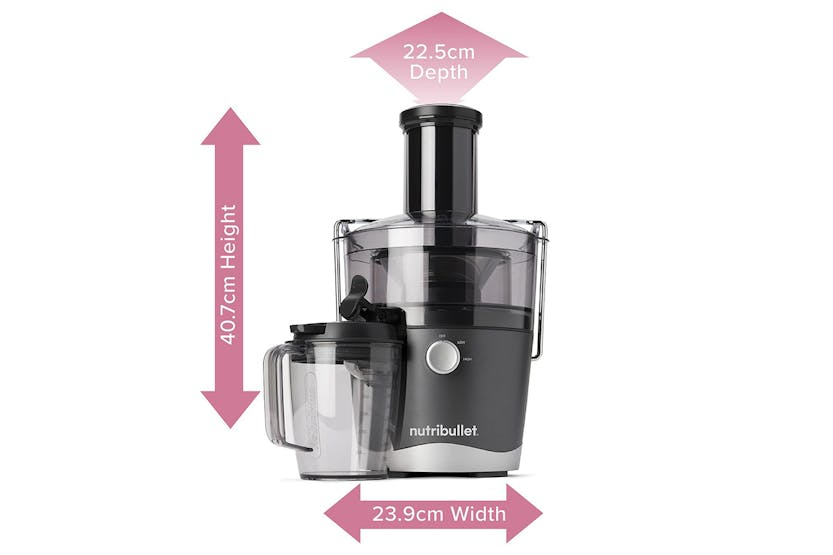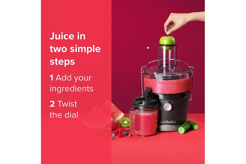 The Nutribullet 800W Juicer is a compact and efficient juicer designed for everyday use. With a wide 3” feed chute that eliminates the need for prep work, two speeds for precise juicing control, and a sealing juice pitcher for easy storage, this juicer makes it simple to enjoy fresh, homemade juice with minimal effort. Cleanup is a breeze with dishwasher-safe parts, making this juicer a convenient addition to any kitchen. Say goodbye to complicated juicing and hello to quick, delicious results with the Nutribullet 800W Juicer.