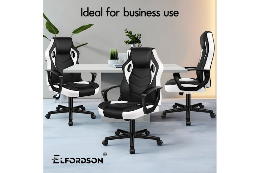 Experience ultimate comfort and support with the ELFORDSON Gaming Chair in white. Crafted with a blend of PU leather and breathable mesh, this chair offers ergonomic design to reduce strain and enhance posture during long gaming sessions or work projects. With a 360-degree swivel, tilt adjustment, and high-grade casters, enjoy smooth movement and convenience while meeting safety standards with TÜV, Intertek, and BIFMA approvals. Elevate your gaming or work experience with the ELFORDSON Gaming Chair, designed for Irish professionals seeking functionality and style.
