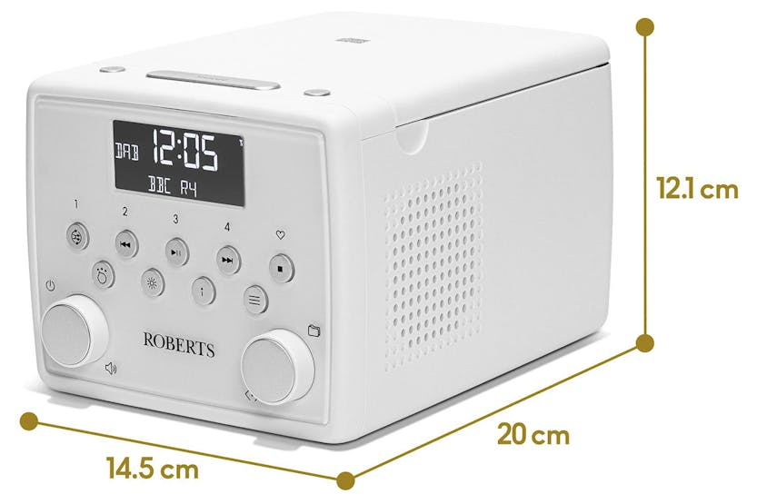 Enhance your morning routine with the Roberts Alarm Clock Radio with CD Player in White. This versatile device allows you to wake up to your favorite CDs or radio stations with its CD playback and 2 x speakers delivering stereo sound. With convenient features like device charging via USB, 20 presets, adjustable sleep timer, and snooze feature, this alarm clock radio is a must-have for any bedroom. Enjoy crystal clear sound and modern functionality with the Roberts Alarm Clock Radio. Its sleek design and advanced features such as WAV/MP3/WMA playback via USB, CD & USB bookmark feature, and 3.5mm stereo headphone out make it a practical and stylish addition to your home. Wake up refreshed and ready for the day with this reliable and user-friendly alarm clock radio.