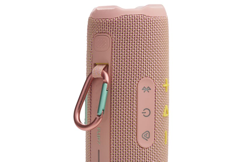 Experience bold JBL Pro Sound with the JBL Flip 7 Portable Bluetooth Speaker in Pink. Enhanced bass and crisp higher frequencies deliver powerful, clear audio with AI Sound Boost technology for maximum acoustic performance. With up to 16 hours of playtime, waterproof, dustproof, and drop-proof design, and multi-speaker connection capability, the JBL Flip 7 is the perfect companion for any adventure. Plus, the PushLock system with interchangeable accessories and lossless audio playback ensure a customizable and high-quality listening experience every time. Elevate your sound with the JBL Flip 7 and enjoy music on-the-go like never before.