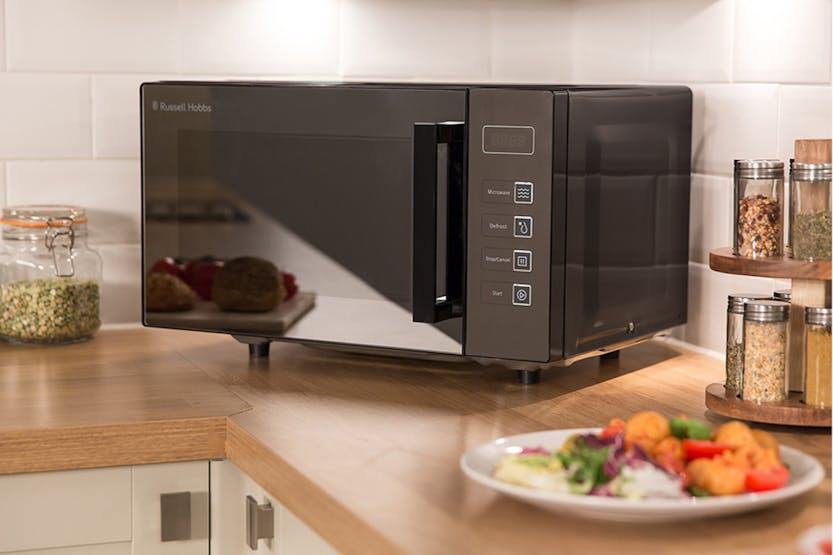 Upgrade your kitchen with the Russell Hobbs 23L 800W Freestanding Solo Microwave in sleek black. With its intuitive design featuring 4 simple buttons for easy microwaving and defrosting, this microwave offers convenience without complicated settings. The flatbed technology provides more usable space, while the diamond cavity ensures effective cooking. Perfect for small households, this microwave combines style and functionality for a seamless cooking experience.