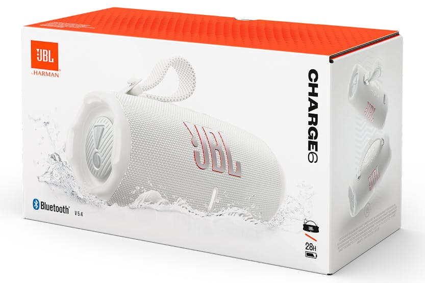 The JBL Charge 6 Portable Bluetooth Speaker in White is the ultimate audio powerhouse, delivering powerful JBL Pro Sound with AI Sound Boost for a truly immersive listening experience. With up to 28 hours of playtime, waterproof, dustproof, and drop-proof design, multi-speaker connection capabilities, and a built-in powerbank, this speaker is perfect for any adventure or party. Experience the next level of portable audio with the JBL Charge 6. With features like lossless audio playback, fast charging, and a sturdy handle strap, this speaker is designed to keep the music going wherever you go. Plus, with eco-friendly materials and packaging, you can enjoy your favorite tunes while being kind to the planet.