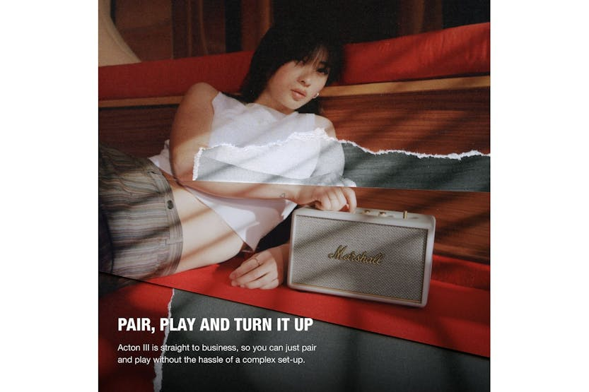 Experience music like never before with the MARSHALL 1006007 - ACTON BT III Cream Bluetooth speaker. Its re-engineered stereo soundstage and next-gen Bluetooth technology deliver a wide-reaching, immersive sound experience perfect for any music enthusiast. With easy setup, sustainable construction, and innovative design features, this iconic speaker is sure to impress both your ears and your environmental consciousness. Elevate your music listening experience with the MARSHALL 1006007 - ACTON BT III Cream Bluetooth speaker today.