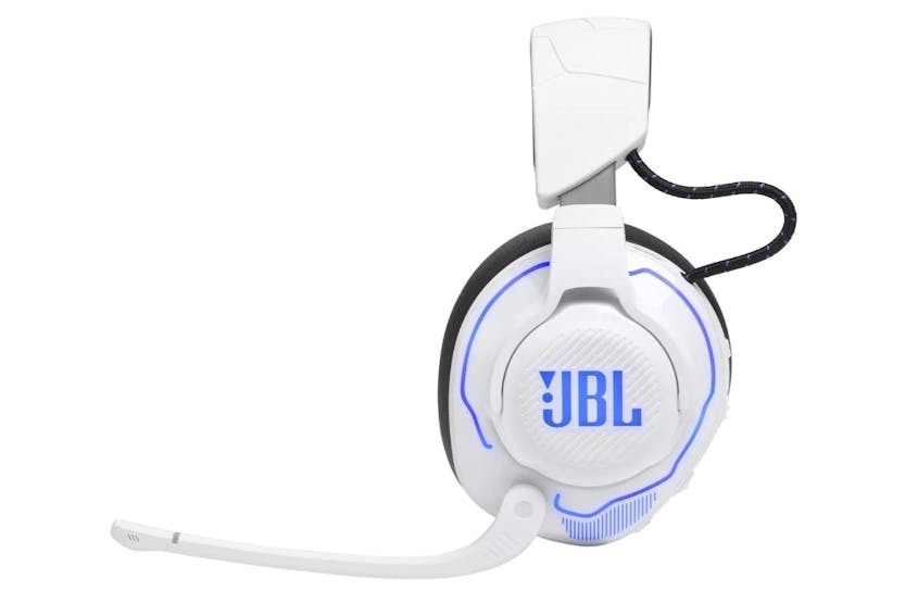 Experience unparalleled immersive sound with the JBL Quantum 910P Console Over-Ear Noise Cancelling Headphone in White. Designed for PlayStation, this wireless headset delivers hi-res audio with integrated head tracking for a competitive edge. With Active Noise Cancelling, low latency wireless connection, and up to 39 hours of battery life, you can stay fully engaged in your game without distractions. Game in comfort and style with this durable, versatile headset that is also compatible with Nintendo Switch, PC, and Xbox. Gain the competitive advantage with JBL Quantum Spatial 360 technology and Hi-Res Certified JBL Quantum Sound Signature, providing professional-level 3D audio positioning and crystal-clear sound for a truly immersive gaming experience. The flip-up-to-mute boom mic with echo and noise suppression ensures clear communication with your team, while the dual source feature allows you to stay connected to multiple sources simultaneously. Stay in the game longer with the ability to play and charge at the same time, making the JBL Quantum 910P Console Wireless headset the ultimate gaming accessory for any platform.