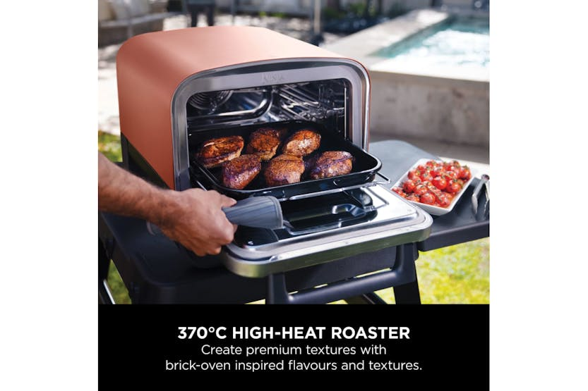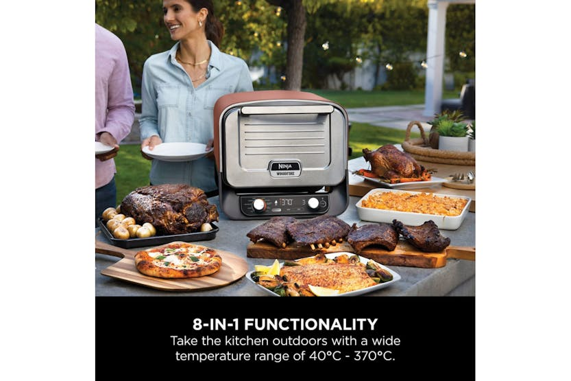 Experience the ultimate outdoor cooking versatility with the Ninja Woodfire Electric Outdoor Oven. This 8-in-1 powerhouse allows you to create a wide range of dishes, from artisan pizzas to tender BBQ meats, all with the convenience of electric heat control. With Woodfire Technology for authentic smoky flavors and a high-heat roasting option up to 370°C, this outdoor oven is perfect for hosting gatherings and creating delicious meals with ease. Elevate your outdoor cooking experience with the Ninja Woodfire Electric Outdoor Oven. With 8 cooking functions, including pizza making, roasting, smoking, and more, this versatile appliance brings the flavors of a brick oven to your backyard. Complete with Woodfire Technology for real wood pellet smoke infusion and precise temperature control up to 370°C, this outdoor oven is ideal for creating a variety of dishes, from juicy steaks to artisan pizzas, all with the convenience of electric power.