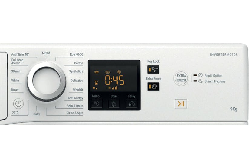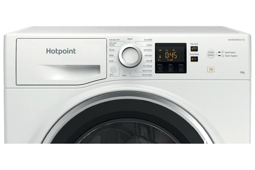 Experience superior stain removal and energy efficiency with the Hotpoint 9kg Freestanding Washing Machine. Featuring an Anti-stain programme that eliminates common stains without pre-treatment, a Steam Hygiene option to remove allergens, and an A Energy Class for maximum savings. The Full Load 45' programme allows for quick washing without compromising performance, while the Anti Allergy cycle is perfect for sensitive skin. With convenient features like Start Delay, Remaining Time Display, and Rapid Option, this washing machine offers exceptional care for your clothes. Trust in the Inverter Motor for long-lasting performance, and enjoy the fast 1400 RPM spin speed for efficient drying. The Wool Care programme ensures gentle washing for delicate fabrics, while the range of programmes including Synthetics, Wool, Duvets, and Eco Cotton provide versatile options for all your laundry needs. Upgrade your laundry experience with the Hotpoint 9kg Freestanding Washing Machine for impeccable results every time.