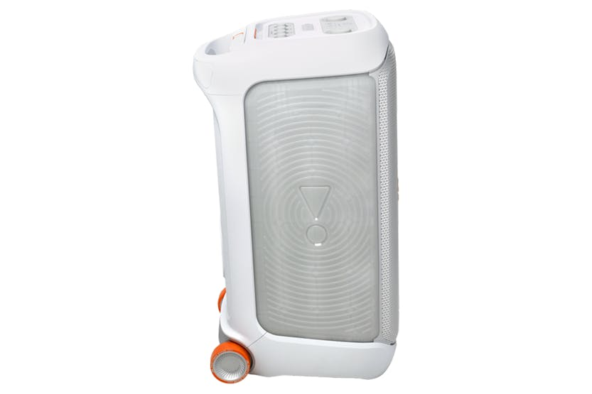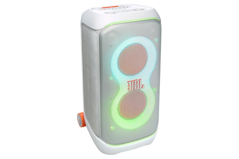 Elevate any party with the JBL PartyBox Stage 320 Bluetooth Speaker in White. Featuring powerful JBL Pro Sound, a futuristic lightshow synced to your beat, and up to 18 hours of playtime on a single charge, this speaker is perfect for indoor or outdoor gatherings. With dual mic and guitar inputs, splash-proof construction, and the ability to connect multiple speakers wirelessly, the JBL PartyBox Stage 320 is the ultimate party companion for bringing people together and creating an unforgettable experience. The JBL PartyBox Stage 320 is designed for those who want to take their parties to the next level. With features like AI Sound Boost, a telescopic handle, wide sturdy wheels, and the JBL PartyBox app for easy control and customization, this speaker delivers exceptional sound quality and an immersive lightshow experience. Made in part with recycled materials, this speaker is not only powerful but also environmentally conscious, making it the perfect choice for those who want to party responsibly.