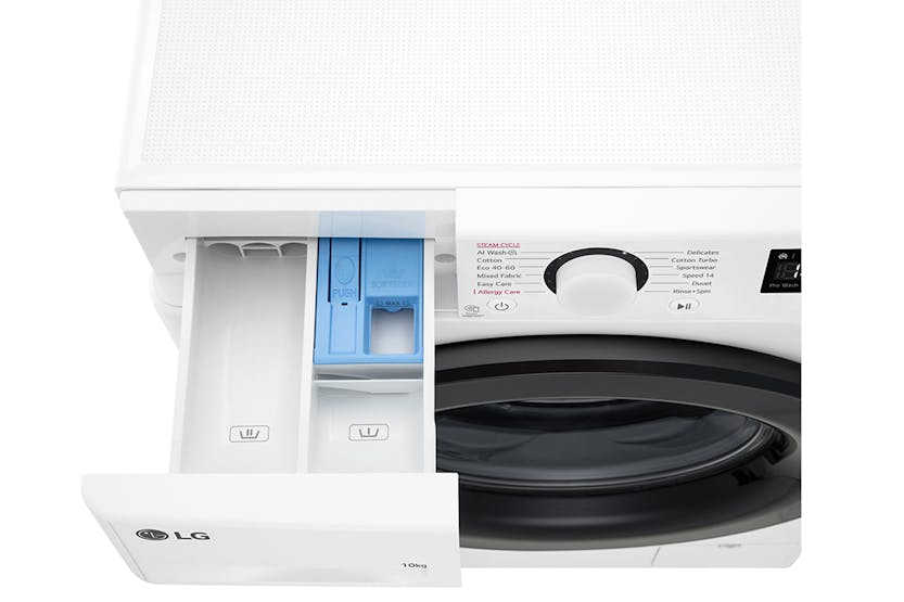 Make laundry day a breeze with the LG F4Y510WBLN1 Washing Machine. Featuring TurboWash technology for a quick 5kg wash in just 39 minutes, AI Direct Drive for optimal fabric care, and Steam technology to eliminate allergens, this machine offers efficient and hygienic cleaning. With a bigger drum in the same sized body and 10% less energy usage than the A rating threshold, the LG F4Y510WBLN1 combines convenience and eco-friendliness for a top-notch laundry experience.