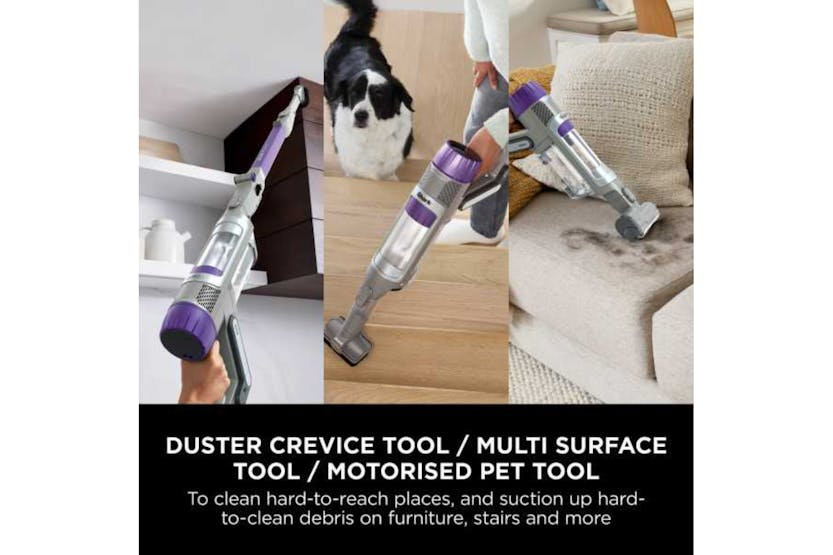 The Shark PowerDetect Cordless Pet Vacuum Cleaner IP1251UKT offers powerful and efficient cleaning with PowerDetect Intelligence, boosting power by up to 75% for optimal performance. With features like DirectionDetect for forward and reverse cleaning, DirtDetect for automatic dirt detection, and Anti Hair Wrap Plus for effective hair pickup, this vacuum is perfect for tackling pet hair and debris. The Flexology design allows for easy storage and reach under furniture, while the handheld mode and included accessories make it versatile for all cleaning needs. Plus, with up to 70 minutes of run-time and a 5-year guarantee, you can clean with confidence and convenience.