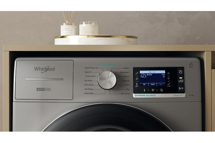 Experience the ultimate in washing machine technology with the Whirlpool 10kg Supreme Silence Freestanding Washing Machine | W809ADSUK. Featuring innovative ZenTechnology for a quieter wash, A-30% energy saving with WaterSave technology, and AutoDose for efficient detergent dispensing, this machine ensures outstanding cleaning performance with great savings. Enjoy fresh, sanitized laundry with FreshCare+ and Steam Hygiene features, while the 1400 RPM spin speed and A energy rating provide optimal efficiency. With a spacious 10kg capacity and a range of programmes including Silk, Wool, and Eco 40-60, this washing machine offers convenience and superior results for all your laundry needs.
