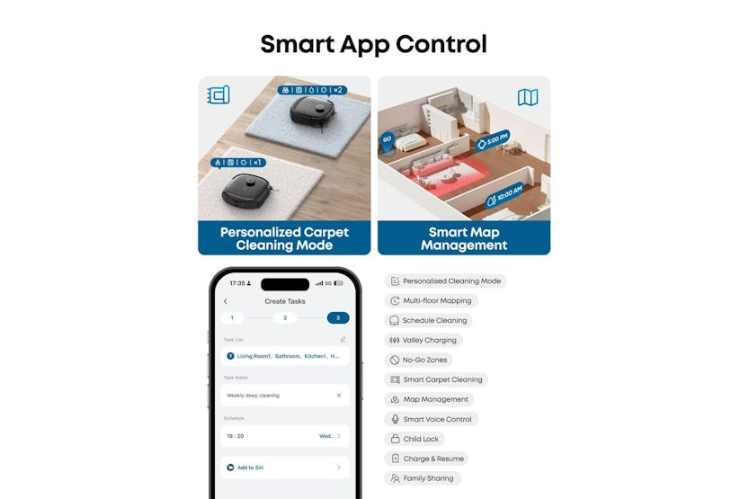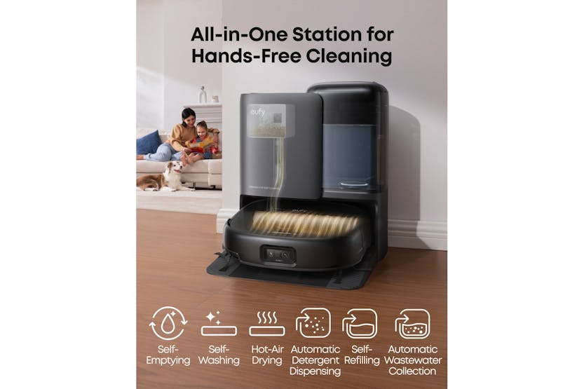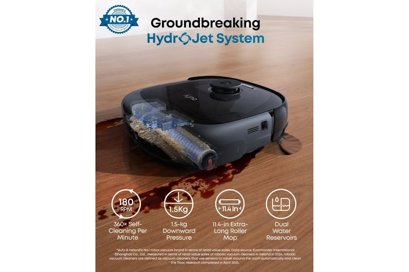 Experience unparalleled cleaning power with the Eufy Omni E25 Robot Vacuum Cleaner. With its HydroJet System and 20,000-Pa Turbo Suction, this 2-in-1 robot vacuum ensures spotless floors with just one clean. The self-emptying station and advanced AI recognition features make maintenance a breeze, while the CornerRover Arm provides complete edge-and-corner coverage for a thorough clean every time. Say goodbye to dirt and hello to convenience with the Eufy Omni E25 Robot Vacuum Cleaner.