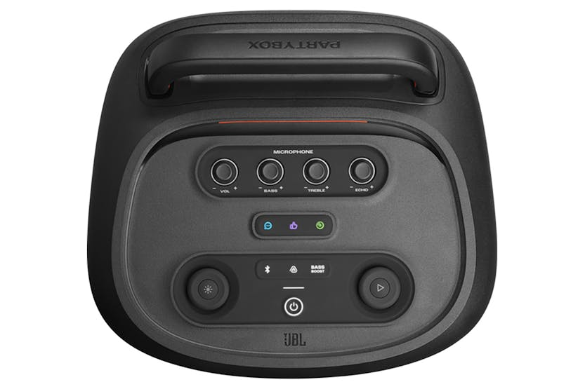 Elevate your parties with the JBL PartyBox 520 Party Speaker in Black. With electrifying sound powered by AI Sound Boost technology, a futuristic lightshow, and up to 15 hours of playtime, this speaker is designed to keep the good vibes going all night long. Pair multiple speakers for even bigger sound and control your music and lightshow right from the JBL PartyBox app. With sturdy wheels, a telescopic handle, and IPX4 splash-proof design, the PartyBox 520 is ready to bring the party wherever you go.