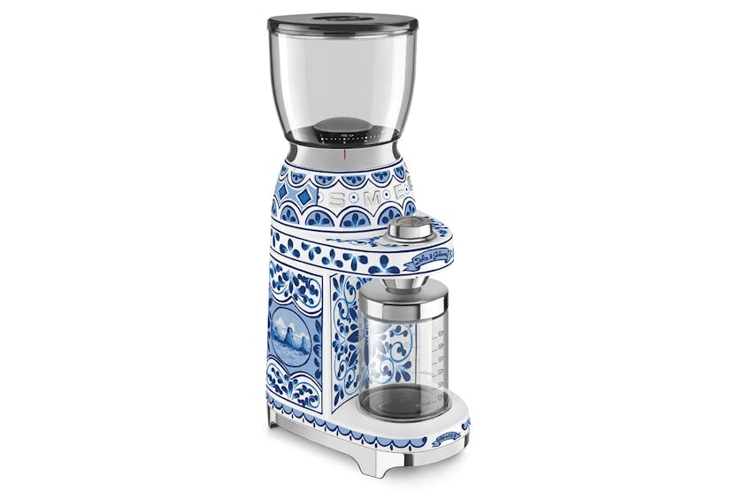 Experience the perfect cup of coffee with the Smeg 50's Dolce & Gabbana Retro Style Coffee Grinder. Featuring 30 grinding levels and a conical burr design, this electric grinder allows you to customize your grind for espresso, drip filter, cafitiere, or moka pot brewing. With anti-slip feet, an integrated cord, and a detachable grinder for easy cleaning, this coffee grinder combines style and functionality in one sleek package. Boasting a glossy finish, stainless steel burrs, and a unique Decorated & Special colour scheme, the Smeg CGF01DGBUK Coffee Grinder is a must-have for any coffee enthusiast looking to elevate their home brewing experience. Say goodbye to pre-ground coffee and hello to freshly ground beans with this stylish and high-quality appliance.