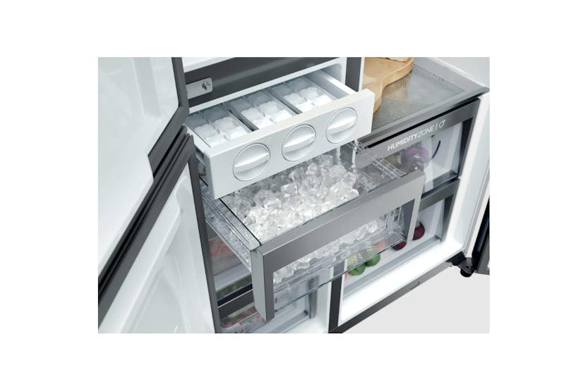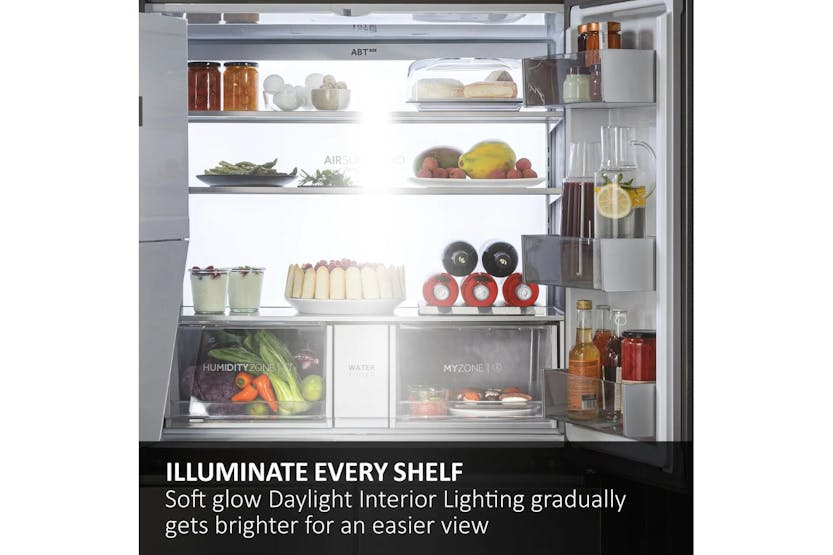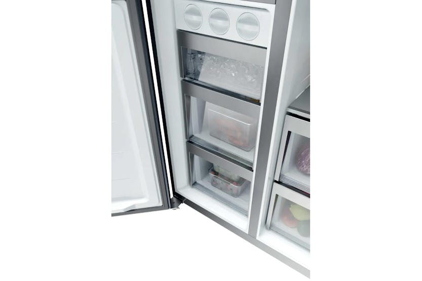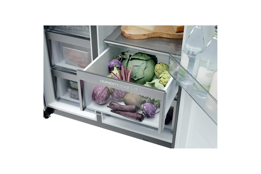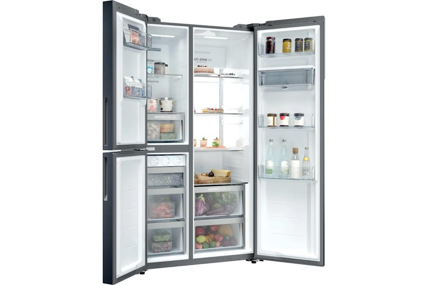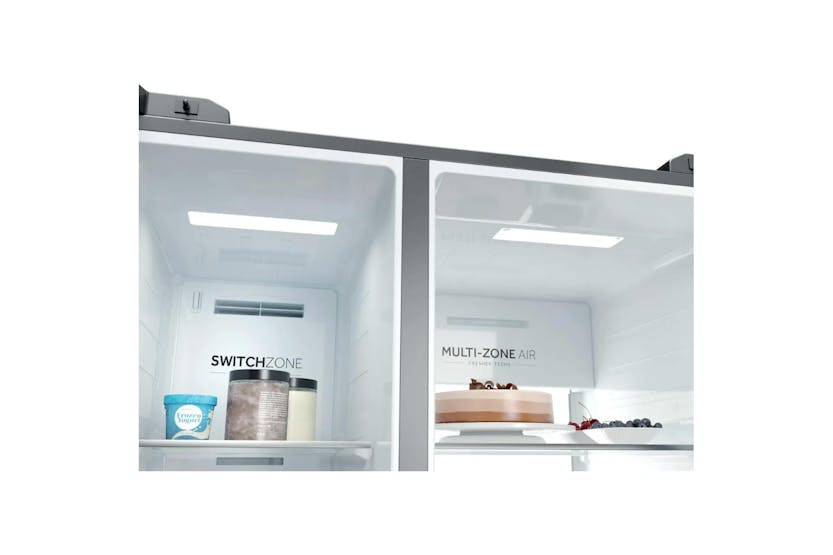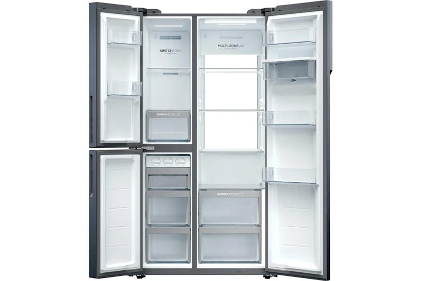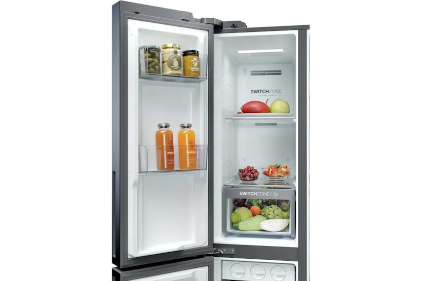 Upgrade your kitchen with the Haier 90 Series 7 Freestanding American Fridge Freezer. Boasting a spacious 573-litre capacity and innovative features like Daylight LEDs, Humidity Zone, and Switch Zone, this fridge freezer ensures your food stays fresh and organized. With Total No Frost technology, Inverter compressor, and Super Freeze function, this appliance is not only convenient but also energy-efficient, saving you time and money in the long run. Experience the convenience of adjusting temperature settings remotely with the hOn app, making your kitchen smarter and more efficient.