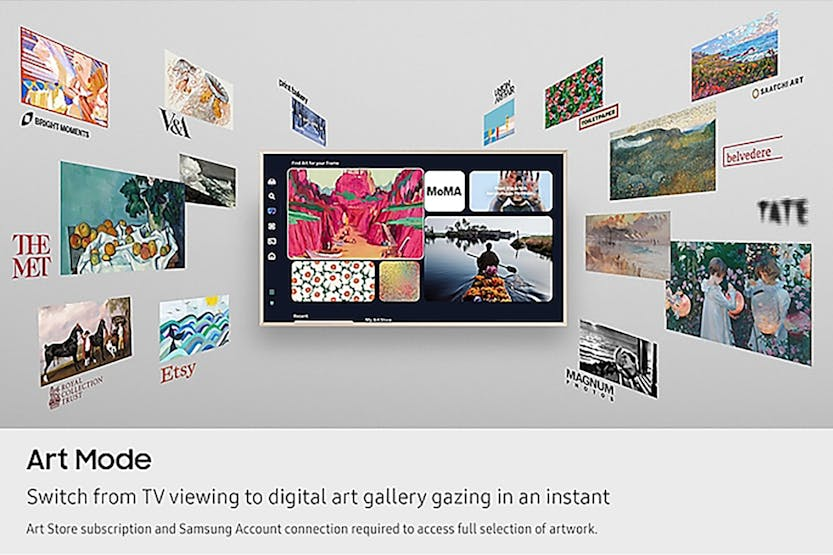 Experience the perfect blend of art and entertainment with the Samsung 50" LS03D QLED 4K Smart TV. With its modern frame design, customisable bezels, and Pantone-validated colours, this TV transforms into a stunning work of art when not in use. Enjoy immersive sound with Dolby Atmos, clutter-free setup with the One Connect Box, and superior 4K viewing powered by the NQ4 AI Gen2 Processor. Elevate your living space with the Art Mode, Art Store access, and slim fit wall mount included, creating a sleek, minimalistic finish that enhances your home decor. Upgrade your viewing experience with the Samsung 50" LS03D QLED 4K Smart TV. With features like Adaptive Sensors, 4K AI Upscaling, Quantum HDR, and My Photo frame, this TV offers enhanced picture quality, detail, and clarity. Enjoy a wide viewing angle, motion xcelerator, and karaoke mic for added entertainment value. With accessories like the remote controller, customizable frame support, and full motion slim wall mount, this TV provides a complete and immersive viewing experience for your home.