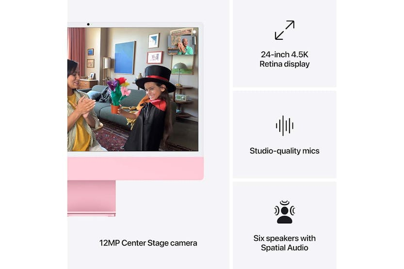 Experience the ultimate in performance and style with the iMac 24" 4.5K M4 in Pink. Powered by the Apple M4 chip, this all-in-one desktop boasts a stunning 24-inch 4.5K Retina display, advanced camera and audio features, and seamless connectivity options. With Apple Intelligence, privacy and security are built right in, ensuring peace of mind while you work, create, and play. Plus, enjoy the convenience of effortless integration with your other Apple devices for a truly magical user experience. Purchase includes a 2-year warranty courtesy of Harvey Norman. For a desktop that fits perfectly in your space and supercharges your productivity, look no further than the iMac 24" 4.5K M4 in Pink. With lightning-fast performance, vibrant display, and advanced features like Center Stage camera and Spatial Audio, this iMac is designed to elevate your work and entertainment experience. Connect all your accessories with up to four Thunderbolt 4 ports and enjoy lightning-fast data transfers. Plus, with robust security features like Find My and FileVault, your data is always protected. Experience the power of Apple Intelligence and seamless integration with your Apple devices, all in a sleek and stylish design that adds a pop of colour to any space.