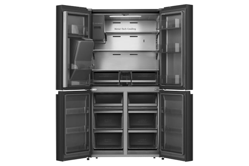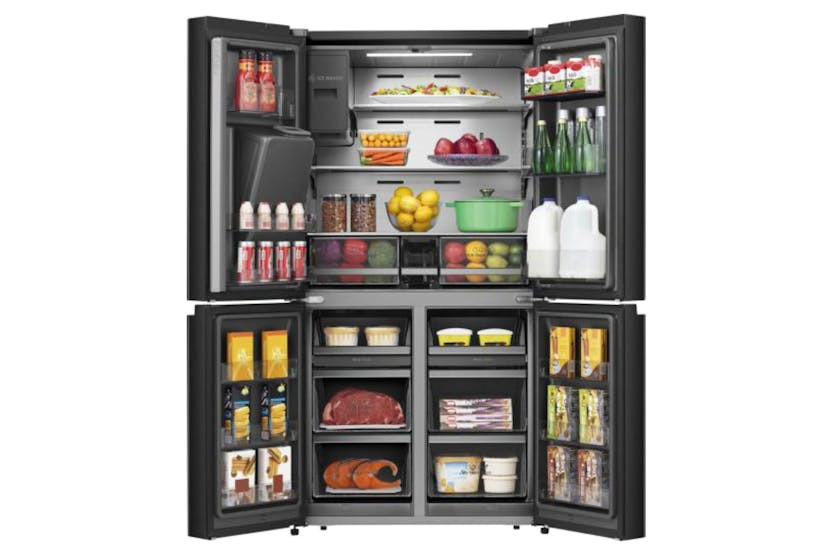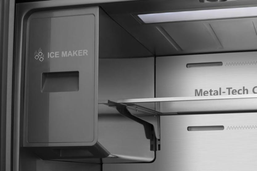 Upgrade your kitchen with the Hisense Freestanding American Fridge Freezer | RQ760N4SBFE, featuring a convenient ice & water dispenser for easy access to cold drinks and a versatile My Fresh Choice zone for customizable storage. With a premium flat door design, antibacterial guard, and metal glide drawers, this fridge-freezer offers modern style and practicality. Enjoy flexible storage options with height-adjustable shelves, durable inverter technology for energy savings, and surround LED lighting for a brighter interior. The super cool & super freeze functions allow for quick chilling and freezing, while the XXL door balcony provides ample space for larger items. Elevate your kitchen experience with this high-quality appliance. Take advantage of the 10% back in Harvey Norman Gift Cards promotion when you spend 500 or more on Large Appliances, and bring home the Hisense American Fridge Freezer for a stylish, efficient, and innovative addition to your home.