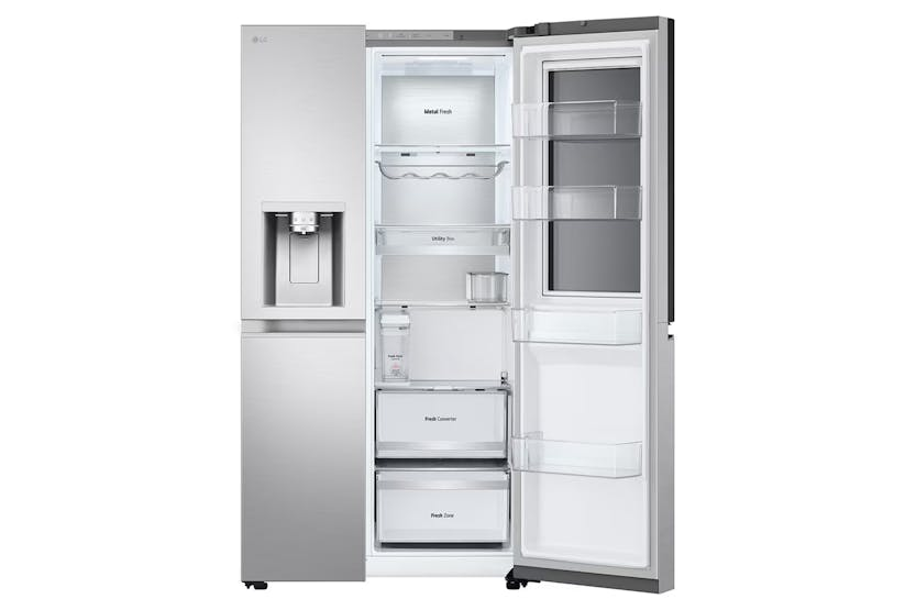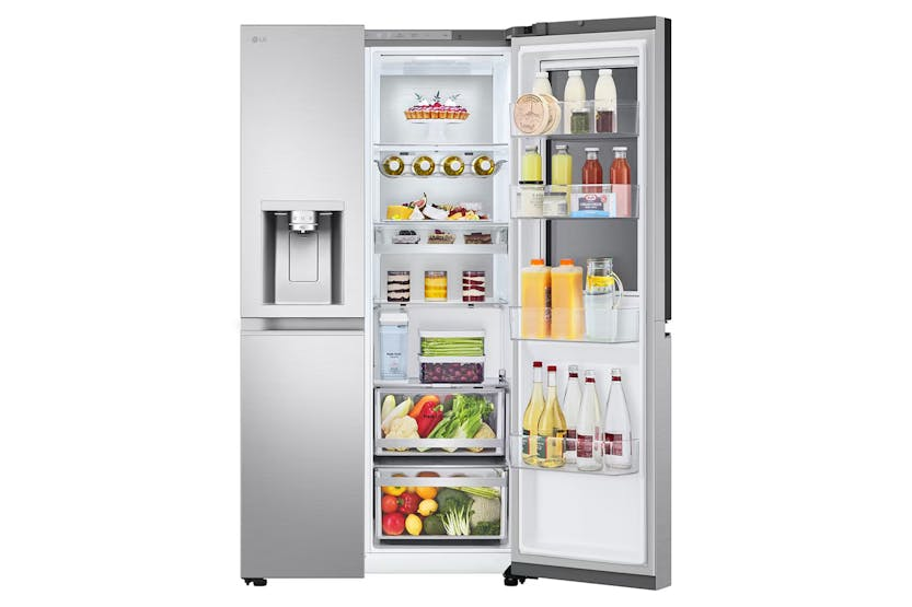 Upgrade your kitchen with the LG Side-by-Side American Fridge Freezer GSXE91BSAD, featuring innovative technology for optimal freshness and convenience. Say goodbye to bacteria with UVnano technology that eliminates 99.99% of bacteria from the water dispenser nozzle. Enjoy easy access with InstaView ThinQ, smart features like Smart Learner for optimized cooling, and Wi-Fi connectivity for remote control. The sleek design with a pocket handle and metallic finish adds a touch of modern luxury to your space. With the Smart Inverter Compressor, this fridge freezer is not only durable but also energy-saving, making it a smart choice for your home. Experience superior freshness and convenience with the LG Side-by-Side American Fridge Freezer GSXE91BSAD. From UVnano technology that eliminates bacteria to Smart Inverter Compressor for energy efficiency, this fridge freezer offers a range of innovative features. Enjoy easy access with InstaView ThinQ and control your fridge from anywhere with the LG ThinQ app. The stylish design with a pocket handle and metallic finish adds a touch of elegance to your kitchen. Upgrade to a smarter, more efficient appliance with the LG Side-by-Side American Fridge Freezer GSXE91BSAD.