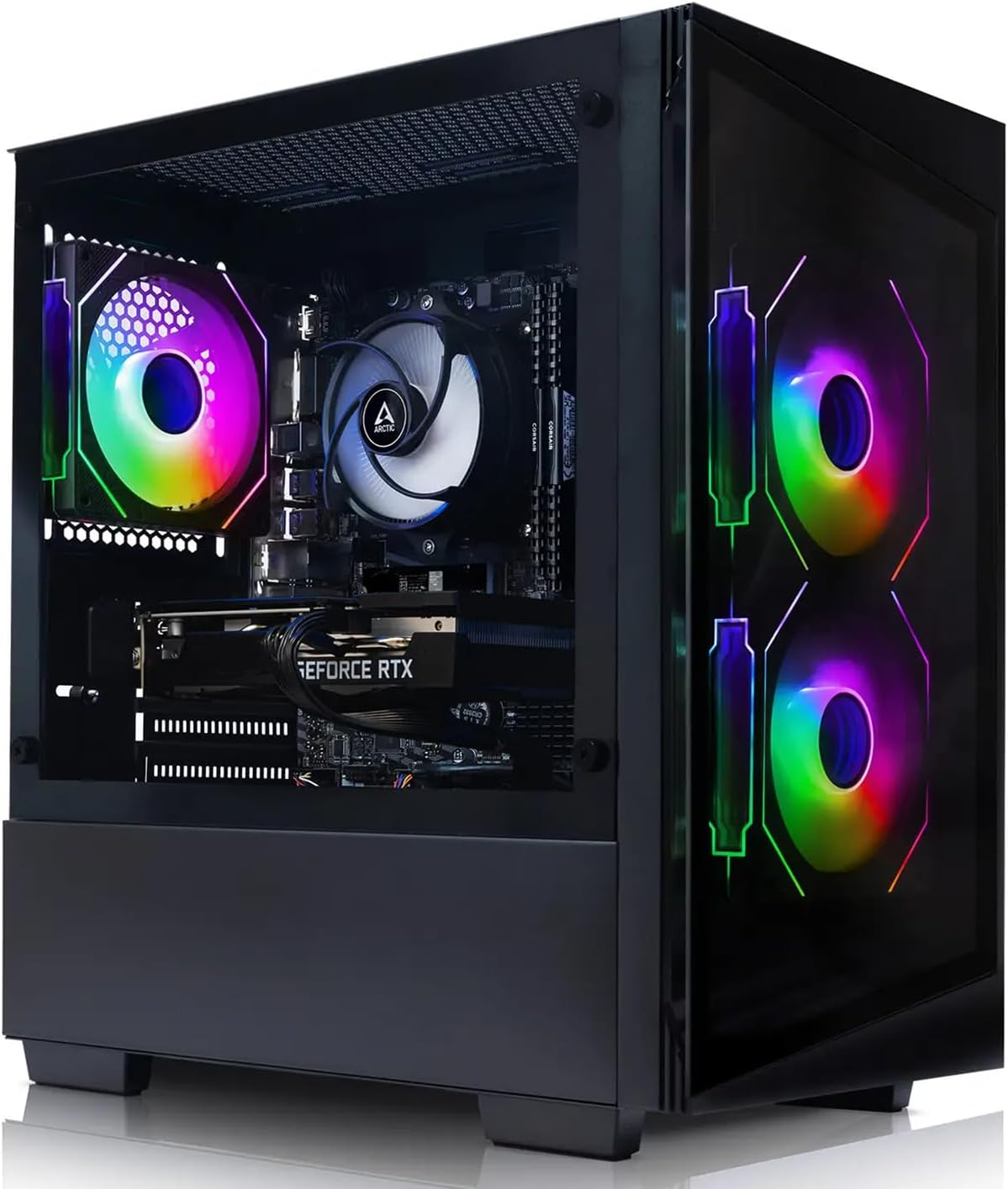 About this item AMD Ryzen 5 8400F - 6 Core / 12 Thread - 3.9GHz Base / 4.7GHz Boost - great for gaming, content creation and streamers who love to multi-task. Whether you are playing the latest games, designing the next skyscraper, or crunching data, you need a powerful processor that can handle it all—and more. Hands down, the AMD Ryzen 5000 Series desktop processors set the bar for gamers and artists alike. NVIDIA GeForce RTX 3050 6GB GDDR6 Graphics Card - delivering realistic graphics, incredibly fast performance, and new cutting-edge AI features like DLSS. RTX. It's On. 16GB 3200MHz DDR4 RAM - For the fastest system operation in application and content creation environments Plenty of storage for all your files, games and data on the 1TB Hard Drive, plus 300mbps WiFi, Level 3 Black ARGB Gaming Case Pre-installed with Microsoft Windows 11 Operating System - For a secure and stable desktop environment › See more product details