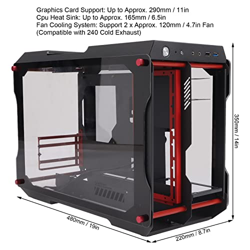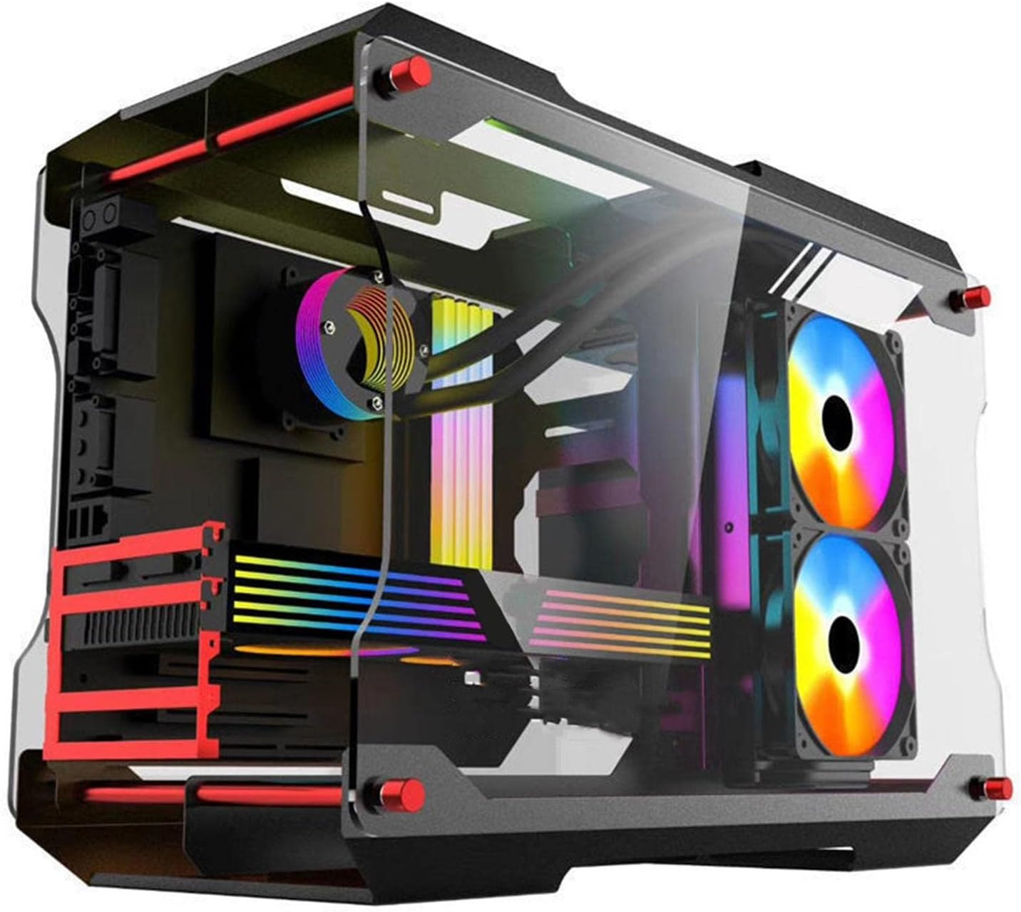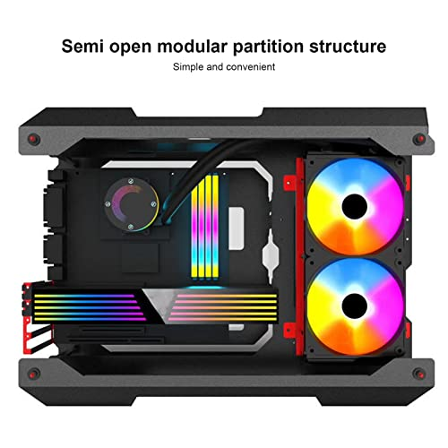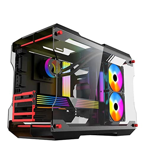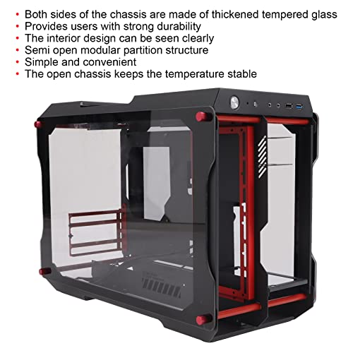 About this item Strong Durability : Both sides of the case are made of thickened toughened glass, which provides strong durability and allows users to see through the interior design Semi Open: Semi open modular partition structure, optimized duct, each hardware area to perform their own functions Easy and Convenient : The front and left plate can be detachable fan heat bracket, the position can be adjusted left and right to prevent the water cooling line pipe is not long enough, simple and convenient Keep Temperature Stable: The open case keeps the temperature stable and guides the breath to stream smoothly through every corner Open Heat Dissipation: Two sides of the tempered glass open cooling e sports chassis, is the choice for DIY players › See more product details
