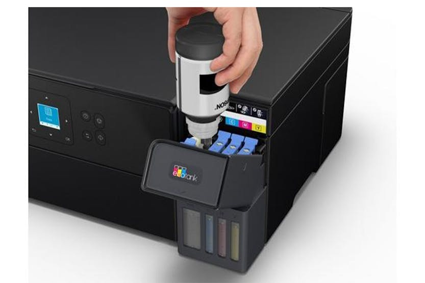 Description Check out the video: Save up to 95% on printing costs* with Epson’s cartridge-free EcoTank printers. Supplied with high yield ink bottles, the integrated ink tanks are easy to fill thanks to the specially engineered ink bottles. With no cartridges to replace, and flexible connectivity features, this is the perfect printer for anyone looking for high-quality prints at an incredibly low cost-per-page. Say Goodbye to Cartridges EcoTank provides hassle-free home printing -the ultra-high capacity ink tanks allow mess-free refills and the key-lock bottles are designed so only the correct colour can be inserted. The front ink level display means it's easy to see when it's finally due for a refill. Keep On Saving This economical printer saves you up to 95% on printing costs and comes with up to 3 years' worth of ink". One set of ink bottles delivers up to 8,500 pages in black and white and 6,500 in colour, the equivalent of up to 63 cartridges worth of ink!" Packed With Features Featuring a 100-sheet rear paper tray, borderless photo printing (up to A4) and fast print speeds of up to 15 pages per minute", you can speed through a variety of tasks with ease. Additional benefits include a user-friendly 3.7cm LCD screen, automatic double-sided printing, quick and easy print quality adjustment and a convenient output tray that automatically opens when printing. The stylish blue light on top of the ink tank cover also means you can monitor your printer's status at a glance". Built To Last Heat-Free Printing Technology means the printhead will last the lifetime of the printer* so you can benefit from no unnecessary replacement parts or upgrades, as well as reduced power consumption compared to laser printers*. It is also engineered to prevent nozzle clogging". Modern Flexibility Featuring a compact design and Wi-Fi and Wi-Fi Direct connectivity, you can easily integrate this printer with your existing home set-up and print from mobiles, tablets and laptops". With support for dual-band and and mesh Wi-Fi networks, the speed and reliability of your printer's wireless connection is optimised to deliver a fast and seamless printing experience. Epson Smart Panel App This app enables you to control your printer from your smart device*. You can print, copy and scan documents and photos, set up, monitor and troubleshoot your printer, all from your phone or tablet. What's in the Box: 1 set of ink (1x 127ml bk, 3x 70ml cmy) Main unit Power cable Quick setup guide Product Features: Printing method: Precisioncore print head Ink technology: Pigment black and dye colour inks Black yield: 6,600 pages Colour yield: 5,500 pages Scanner type: Contact image sensor (CIS) Duplex: Yes (A4, plain paper) Interfaces: USB, Wi-Fi direct, wireless LAN IEEE 802.11a/b/g/n/ac(Wi-Fi 5)/k/v/r