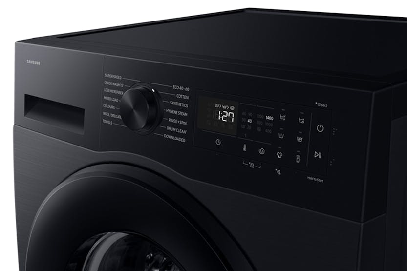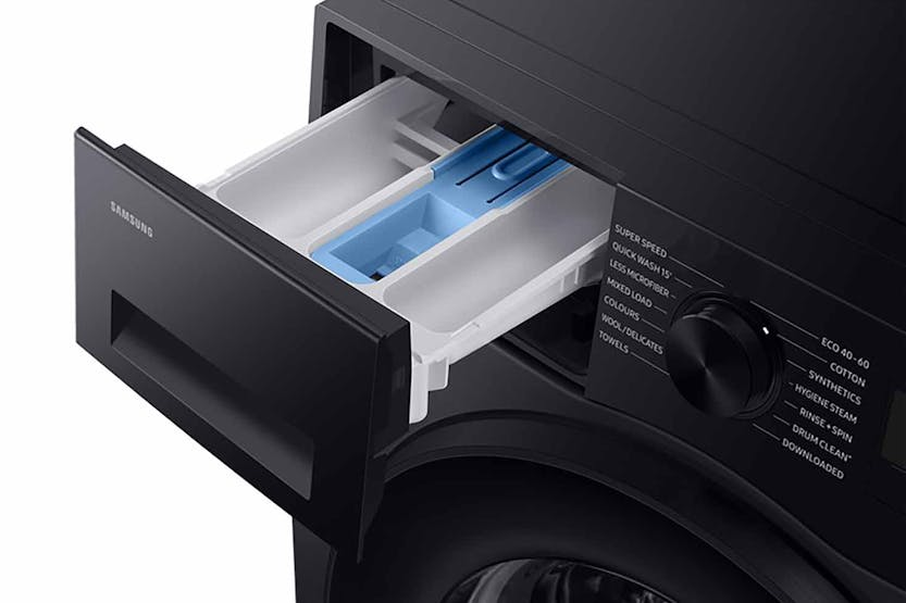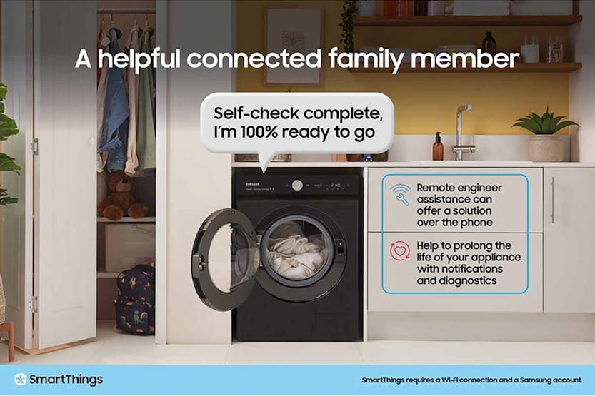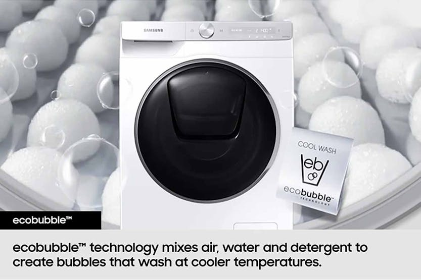 Description Wash Intelligently Check out the video: Smart Energy Savings: Smartthings Ai Energy Mode Monitor and reduce the washer’s energy use. AI energy mode* lets you check the power consumption and estimates your electricity bill. For courses that operate in ai energy mode** it reduces energy use by up to 70%*** using ecobubble to wash with cool water instead of warm and extra cycle time. * Available on Android and iOS devices. A Wi-Fi connection and a Samsung account are required.** Can be applied when the selected washing temperature is 20~40°C.*** Based on internal testing on the WW11BB944AGB model in normal usage conditions.Results: Power consumption without AI Energy Mode = 0.539 KWh. Power consumption with AI Energy Mode = 0.145 KWh. Results may vary depending on the actual usage conditions. Energy Efficient: Grade A Energy Efficiency Save energy but still wash clothes effectively. Under new european energy labelling, it has the highest energy efficiency rating with a grade a energy label. Its advanced technologies intelligently enhance the washing performance while also reducing energy use without sacrificing functionality. * Based on Samsung internal testing. The WW5000F series models achieve the Class A energy efficiency rating under Regulation (EU) No 2019/2014. Results may vary depending on the usage environment. Check out the video: Smart, Gentle Washing: AI Ecobubble Make laundry less of a chore. Activated on cotton, synthetics and ai wash programs for up to 2kg loads, ai ecobubble detects the type of fabric and optimises the amount of bubbles, washing time, temperature and spin speed. Performance Wash in 39 Minutes: Super Speed Cut your daily laundry time and get clothes thoroughly clean. Use super speed to wash a load in just 39 minutes*. Quickdrive saves time by moving clothes dynamically, while ecobubble ensures powerful cleaning. The rinsing time is shortened using speed spray and it accelerates the spin speed. * Based on using Super Speed at the default settings with a 5kg load. Reduces Microplastic: Less Microfiber Cycle The less microfiber cycle works to make clothes shed less microplastics, which are discharged into the drain water. By adjusting the motor's revolution speed and washing intensiveness, the less microfiber cycle reduces the amount of microfiber released into the drain water by up to 54%*. * Based on testing by the Ocean Wise Plastics Lab using a 2kg load of 100% polyester hoodies, comparing the Synthetics cycle on a Samsung conventional model WW4000T and the Less Microfiber cycle on the WW7000B. Results may vary depending on the actual clothes and usage conditions. Intensive Cleaning: Bubble Soak Get your clothes spotlessly clean, even if they are really dirty. The bubble soak function helps remove a wide variety of stubborn stains, like blood, tea, wine, make-up and grass. Clothes are thoroughly soaked in active bubbles, so dirt and stains are loosened and can be removed effectively*. * Tested in accordance with IEC 60456 5th edition / 8kg Wash Load / Bubble Soak Wash vs. Cotton 40/60°C, Synthetic 60°C, and Denim 40°C without Bubble Soak. Do the Smartthings at Home Connect Your Life with Smartthings: Wi-Fi Embedded Use your washer easily and effectively with the smartthings app*, which enhances your washing. The laundry recipe recommends the appropriate wash cycle** for each load. The laundry planner enhances your daily schedule***. And auto cycle link**** selects an optimal drying course after a wash. * Available on Android and iOS devices. A Wi-Fi connection and a Samsung account are required. It stores user data, preferences and usage patterns to suggest the most useful options.** The user will be solely responsible for any consequence(s) that may result, including but not limited to any damage or harm caused by incorrect information provided by the user.*** The recommended washing cycle is only based on time and may not be appropriate for the type of fabrics or stain level of the articles being washed.**** A Wi-Fi connection is required at all times, which may increase energy consumption. Smatthings Energy: Efficient Energy Use, Smart Savings Manage your household's energy use anytime. Smartthings energy* provides helpful energy efficiency tips. It a lets you monitor the energy consumption of smart appliances** in real time and compare it to the previous month. And it alerts you if your monthly targets are likely to be exceeded. *A Wi-Fi connection and a Samsung account are required.** SmartThings Energy currently works with around 40 Samsung home appliances that are SmartThings enabled. These include washing machines, clothes dryers, dish washers, air conditioners, air purifiers, vacuum cleaners, ovens, hoods, cooktops, microwave, TVs (from June 2022) and energy meters. Hygiene Check out the video: Reduce Bacteria: Hygiene Steam Give clothes a deep and hygienic clean. Hygiene steam releases steam from the bottom of the drum. It removes grime and 99.9% of certain bacteria* and inactivates allergens derived from house dust mites**. Hygiene steam reduces exposure to house dust mite, cat, dog, grass pollen and fungi***. * Based on the Intertek test report for the Hygiene steam course. Removes 99.9% of Staphylococcus aureus and Escherichia coli. Individual results may vary.** Based on the Intertek test report for the Hygiene steam course.*** Based on The British Allergy Foundation (BAF) test report for the Hygiene Steam course, Allergy UK considers that this product will, in proper use, reduce exposure to house dust mite, cat, dog, grass pollen and fungi. Smatthings Home Care: Smart Maintenance, Easy Upkeep Take care of your washer easily. Smartthings home care* notifies you when parts need replacing and helps troubleshoot problems. It also shows you how to update the software of services and devices. And it provides useful tips on using your appliance, as well as a user manual. * Available on Android and iOS devices. A Wi-Fi connection and 
