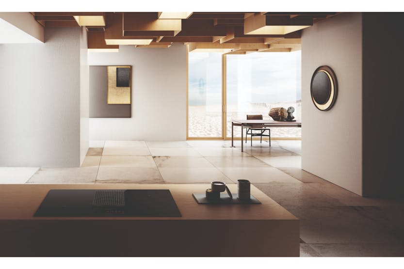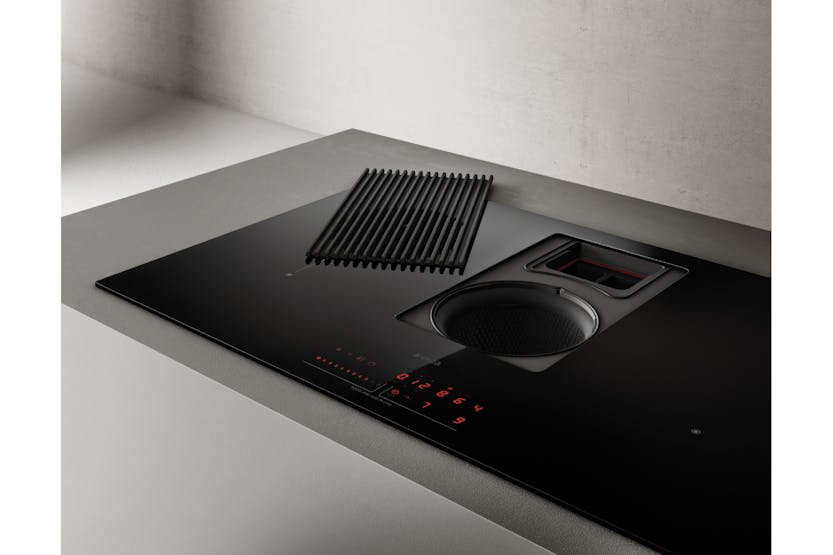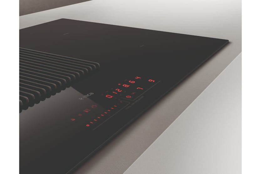 Description Featuring a recirculation system, this induction hob comes with an outlet connection to be fitted to the plinth and is provided with a chrome-plated trim profile. This is perfect for efficient ventilation within the cooking space. The elegant and solid aluminium grill combines the choice of design with the functionality of capturing fumes and odours on the practical support surface. Thanks to the central slider, interacting with the product is even easier and more practical. Product Features: Comfort silence Auto capture Long life filter ++ Super installation Total integration Easy to maintain Delay switch off Maintenance Warming mode