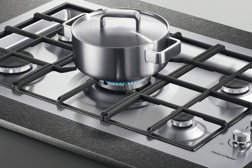 Description Extended Range Item | Available by Special Order Only Delivery expectation: approximately 1 weeks, however this time may vary This item is available by special order only and is not stocked in stores. Purchase online today to secure your product and we will be in contact with delivery estimates. For more information please feel free to contact us using the Ask Us tab. Fits Flush This Gas Cooktop’s burners are recessed into the work surface leaving the trivets flush and providing an integrated kitchen bench with a seamless look. Clever Cooking Results The consistent flame and heat distribution of the dual flame wok burner combined with the highly responsive dials offer precise heat adjustment that can perfect a slow simmer for sauces or an intense heat for searing steaks. Designed to Match The brushed stainless steel has been designed for durability but also provides a modern, stylish finish, matching the Fisher and Paykel family of kitchen appliances. Safe and Sound Intuitive dials glow red for on and white for off, showing from a distance which burners are lit. The flame failure safety device automatically turns off the gas if the flame is accidentally extinguished. Easy Cleaning The stainless steel component is easily accessible and quick to clean. Cast iron trivets provide a durable and stable cooking platform. Their rubber feet prevent them from scratching the cooktop. Handy Accessories This cooktop comes with small pan support and wok stand to complement different cooking styles. Includes: Small pan support Wok stand Product Features: Cast iron trivets Dual wok control Laser-etched graphics Burner indicator lights Spill containment 2.2L Quick connect gas valves Quick component removal Turned stainless dials with illuminated halos