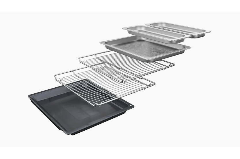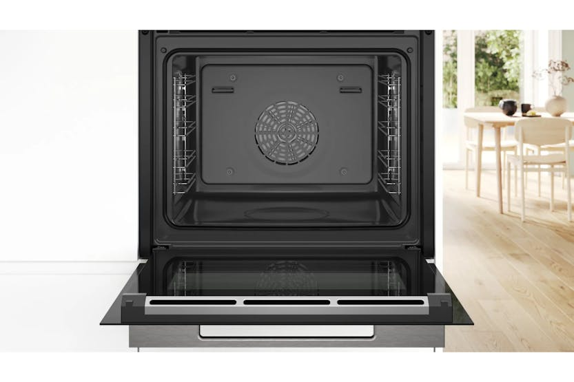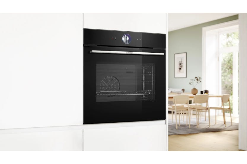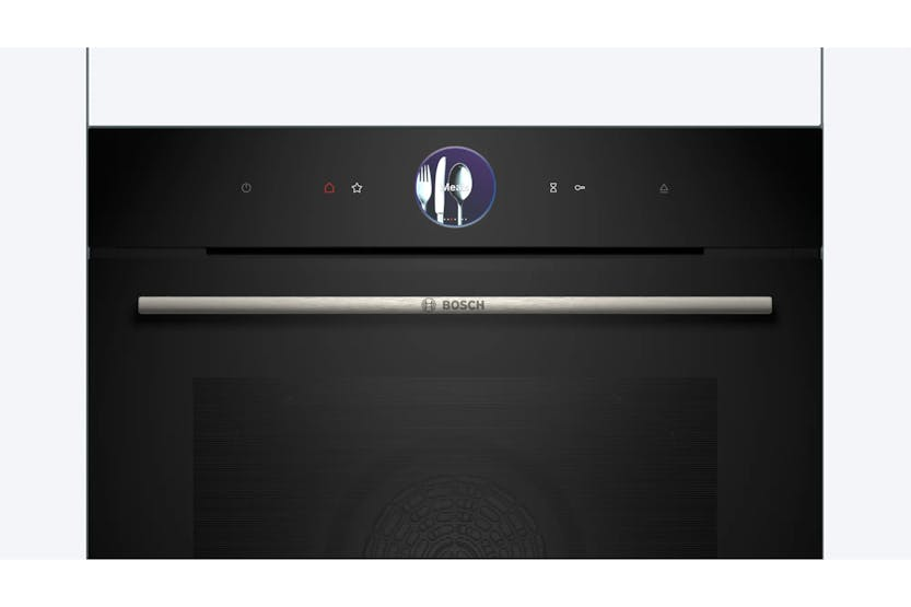 Description View Your Food On Display The innovative Digital Control Ring makes cooking even easier. With a slight turn of the engraved centre ring, you can adjust your oven settings with one finger. There is also a full-surface, high-resolution, plain-text TFT touchscreen and directly selectable buttons. Clear images and info texts on the Digital Control Ring assist you at every step, as you navigate the menu. So you always have a complete overview and full control of your oven. Steam to Perfection Get extra steam to bake bread or roast chicken for added crispness and moisture. A precise sensor constantly measures the oxygen and calculates the humidity level inside the oven to automatically regulate the amount of steam. Once you select the Added Steam function or a dish programme with steam support, the sensor is activated to provide the perfect level of steam. Perfect Steam does it all automatically. Fry at Home Now it is easy to make your own crisps from potatoes. Or any fresh vegetables you like.Just place thinly sliced potatoes or vegetables on the Air Fry & Grill tray, add a splash of oil, and select the Air Fry function. Then you will be snacking in no time. You can also use the Air Fry & Grill tray to prepare grilled dishes. The Air Fry & Grill tray (HEZ629070) is available as an accessory. Cooking Times Made Easy It's not always easy to know if your pie, pizza or roast is properly done. With the Assist Function, your Bosch oven will automatically switch off once the programme is finished. It knows when the dish is ready and informs you via a signal or the Home Connect app. Just pair your oven to your registered Home Connect account. The Connected Way to Cook Take control of your oven from anywhere. Just pair your oven with your Home Connect account for complete control. Also enjoy a range of partner services. You can even use voice control with Amazon Alexa or Google Assist. Select cooking functions, change settings and manage your favourites. Settings are synced between the app and oven. You will receive a notification as soon as the programme is done. Software downloads keep your oven updated. Increase the Heat – and the Goodness The new Steam Function Plus steams at temperatures of up to 120°C, so meals are ready quicker and retain even more goodness. Green beans and carrots, for example, are ready up to 50% faster. Broccoli cooked using Steam Function Plus retains up to 54% more nutrients, while potatoes retain up to 25% more Vitamin C. The Gentle Way of Cooking Do you want to save energy while cooking? With Hotair Gentle, we’ve improved the heating mode that’s most commonly used in households. The fan distributes the heat evenly throughout the oven cavity, which can help save energy. When baking on a single level – such as small baked goods, cakes in tins or cakes on a baking tray – no preheating is necessary. The Smart Route to Your Preferred Dish Now it is easy to get the right programme for every dish. Just ask the Oven Assistant. Pair your oven to your registered Home Connect account and tell it which dish you want to prepare, either via the app or your Amazon Alexa voice control device. Your oven will suggest the most suitable settings or programmes, and switch directly to your selection – pure convenience. To enjoy the Oven Assistant, just pair your oven to your registered Home Connect account. Favourites on Demand Avoid entering the same settings for your favourite dish every time. Simply save them under “Favourites” and access them instantly, at any time, on both your oven and Home Connect app. To enjoy “Favourites”, just pair your oven to your registered Home Connect account. Discover a World of Taste New cookbook recipes can be a disappointment, especially if they don’t include precise temperatures and cooking times. With Home Connect, you can access an entire world of recipes and transfer cooking settings for chosen recipes directly to your oven. Just use your mobile device to select your desired dish. You can also save your favourite recipes in the app for easier access. To enjoy this feature, simply pair your oven to your Home Connect account. Product Feature: TFT touch display plus: Intuitive control with the digital control ring and enlarged tft touchscreen Perfect steam: Bake or roast with extra steam for added crispness and moisture Air fry: Perfectly fry vegetables and chips Automatic switch-off: Stops cooking as soon as the dish is done Home connect with remote control and monitoring: Discover the full potential of your smart oven Read More