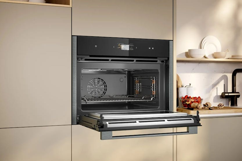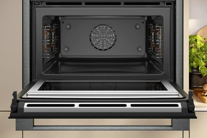 Description See more of what's Happening! Easy to navigate and easy to read so you can make an easy choice! The 4,1" Full Touch TFT Display features a high resolution screen and intuitive menu for simple navigation. Clear images and text provide extensive programme details at a glance so you can choose the settings right for you and take full control of the cooking process. A Warm Welcome for all Foods Say goodbye to rotating plates and partially heated leftovers. Inverter Technology uses the required amount of consistent microwave power to warm your meals quickly, gently, and evenly for quality in temperature, taste, and texture. And thanks to generous oven space, you can heat larger dishes or multiple portions simultaneously and cleanup is a breeze! Microwave Function: Cooking Reinvented - Microwave and Oven in One If you want space and functionality, this two-in-one oven is just right. Defrosting, microwaving, baking and roasting – it’s all part of the package. You can thaw out your casserole and cook it afterwards, quickly bake your puff pastries, and roast your rotisserie-style chicken to tender goodness. All in one convenient space. Prepare up to Four Different Dishes in One Go Concoct a full-course dinner - on up to four levels – in one go. With Circo Therm, you can bake your casserole, Cajun chicken, and more all at the same time. The high-speed targeted airflow ensures that your dishes stay juicy and distinct, so that the casserole stays casserol-y and the chickens Cajun-y. For a fast and easy family feast. Eco Clean with Easy Clean: The Duo for Easy Cleaning Debating whether or not to make that chicken roast? With Eco Clean, there's no need to avoid the cleaning afterwards. The ecolytic coating traps the grease generated during baking, broiling and roasting and breaks it down with each cooking cycle. When the oven reaches high temperatures, back side cleans itselfs. It will be completed by Easy Clean for the cleaning of the base and side walls of the oven interior. Soft Close with Soft Opening: For Gentle Opening and Closing Baking can be such a wonderfully rackety affair. Dough-kneading, batter-beating, egg-white folding, spice-pounding, nutmeg-grating – all make for a culinary symphony. Less so with door banging. Soft Close together with Soft Opening works rather quietly to prevent unwanted cacophony. Its damping system cushions the door when it accidentally closes by itself or gets too much of a push. So when you serve your savoury scones in a rush, the door won’t bang or slam as it shuts. Includes: 1 x Combination grid 1 x Universal pan Product Features: 4,1" full touch TFT display - easy to use and intuitive menu for smart and enjoyable cooking Inverter technology - heat food gradually and evenly Combined microwave and oven - the convenient solution to save space and time Circo therm- our smart hot-air solution for simultaneous baking and roasting on up to four levels Eco clean with easy clean - the duo that makes oven cleaning easier Less time needed for preheating