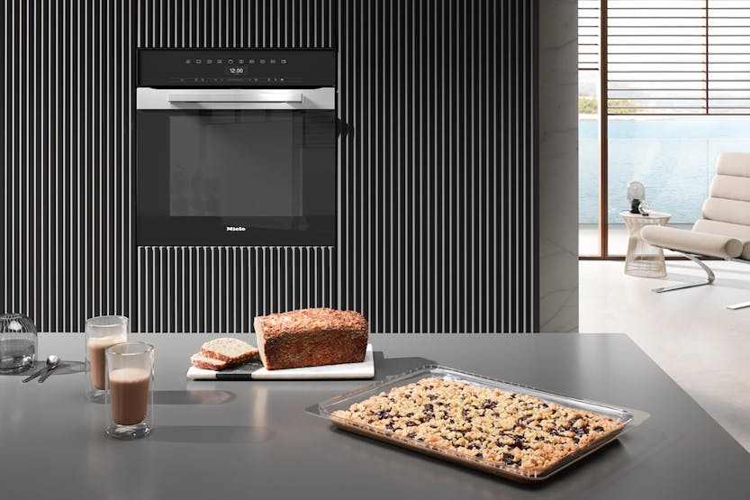 Description Energy Efficiency: Exceptional Energy Efficiency Exceptionally low energy consumption: almost all of our ovens correspond to energy efficiency class A+. This saves you lots of energy – which is good for the environment and your wallet. Airclean catalyser: Fewer Odours Protect your walls, furniture and curtains: the AirClean catalyser significantly reduces grease and unpleasant odours during pyrolytic cleaning – for a pleasant atmosphere in your home. Pyrolytic Cleaning and Pyrofit Accessories: Effortless Cleaning Making life easier: the pyrolytic cleaning process turns all food residue to ash which can be easily removed from the oven surfaces without a trace – minimising the amount of cleaning you have to do. This means there is no need to spend hours scrubbing the oven with aggressive cleaning agents. Depending on the model, some accessory parts can stay in the oven during cleaning for even more convenience. Touch-Cool Front: The Only Thing that Gets Hot is the Food Miele ovens are cooled on all sides. This ensures that controls, handles and adjacent cabinets stay relatively cool to the touch. The multi-layer panels insulate the oven door effectively and ensure a low temperature on the outside of the door, providing safety and protection against burns. Safety Functions: Maximum Safety in any Situation An added level of safety: you can lock the appliance and prevent unintentional operation, e.g. by children. In an emergency, the safety switch-off is invaluable: the Miele oven will switch off automatically if the maximum operating time is exceeded. This means that safety is guaranteed even if you forget to switch the oven off. Moisture Plus: Optimum Results with Additional Moisture The effortless way to perfect results: adding moisture leaves meat tender and juicy on the inside and crisp on the outside; and when baking bread it helps achieve the fluffiness and browning that everyone loves. For extra convenience, you can programme times for the bursts of steam. Moisture plus is also used in various automatic programmes. Automatic Programmes: Stress-Free Cooking with Success Guaranteed Successful cooking, every time: with the electronically controlled programmes, you can cook a multitude of different dishes automatically. Whether you are baking a cake or cooking poultry – there is no need to select the operating mode or the temperature or duration. The degree of cooking – for meat, for example – can be set individually. Tastecontrol: Carry On Cooking? Only If You Want It To Stops the cooking process for perfect results: the oven compartment can be cooled down completely after the cooking process so dishes don't carry on cooking in the oven. Or the oven can keep the food at serving temperature by opening and closing the motorised door. This ensures that your dishes are cooked to the perfect degree and no further – even if you aren't there to take them out of the oven straight away. Crisp Function: Makes Food Crispy Certain foods need a beautifully crisp exterior for that perfect finishing touch: chips and potato croquettes, for example, are best cooked in a dry oven compartment climate. This is achieved through controlled reduction of the moisture in the oven. You can select the Crisp function individually. Domestic Appliance Networking with Miele@Home1: More Freedom, Safety and Convenience With our innovative Miele@home system, you can exploit the full potential of your Miele appliances and make your everyday life even smarter. All intelligent Miele domestic appliances can be networked conveniently and securely. Operation is simple – whether you use the Miele app, voice control or integration into existing Smart Home solutions. The appliances are networked via a home WiFi router and the Miele Cloud. Flexiclip Runners: Optimised Access to your Food Baste or turn food over conveniently and at a safe distance from the hot oven compartment: with the FlexiClip runners, you can easily pull baking trays or wire racks out of the oven without the risk of burning yourself. Our patented system allows you to arrange the fully telescopic runners on different levels to suit your needs. Timer Functions: Leave Time Management to your Oven Simply set the start time, end time or duration of the cooking process and everything will be ready when you want it. The cooking process ends automatically when the programmed cooking duration comes to an end. The integrated minute minder is also a convenient option for many situations. Furthermore, in the event of a power cut, the set time is saved for up to 150 hours. Multilingua: Easy to Understand Guaranteed user convenience: numerous languages are available to choose from for the display text, so users can operate the appliance in a language they understand. MultiLingua is available for all appliance controls as of DirectSensor S. Softopen and Softclose: Gentle Door Movement A real eye-catcher: the door features a sophisticated cushioning mechanism for elegant opening and closing. It opens to 90° – for convenient, unobstructed access to the food in the oven compartment. Convenience Features: Tastecontrol Rapid heat-up Pre-Heating Food probe: With cable Keeping warm Crisp function Operating Modes: Defrosting Automatic programmes Country-specific automatic programmes Auto roast Grill operating modes Grill Fan plus Intensive bake Moisture plus Moisture plus with Fan plus Moisture plus with Conventional heat Moisture plus with Intensive Bake Moisture plus with Auto Roast Conventional heat Bottom heat User Convenience: Networking with Miele@home SoftClose MultiLingua Programmable timed steam injection Timer functions Time synchronisation Date display Minute minder Programmable start of cooking duration Programmable end of cooking duration Programmable cooking duration Actual temperature display Target temperature display Audible signal when target temperature is reached Recommended temperature User programmes Individual settings Efficiency 
