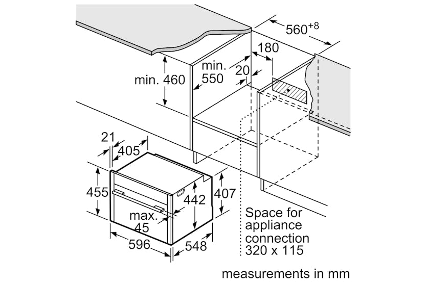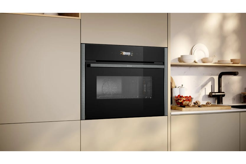 Description A Clearer Display! Check temperature and settings with ease! The 3.7-inch Full Touch TFT Display is a convenient way to keep an eye on what is cooking. The high-resolution screen makes navigating the intuitive menu simple and enjoyable, ensuring you get the most from your oven. A Warm Welcome for any Dish Say goodbye to rotating plates and partially heated leftovers. Inverter Technology uses the perfect microwave power level to consistently heat dishes quickly, gently and evenly, to achieve the right temperature, taste and texture. And thanks to the generous oven space, you can heat larger dishes or multiple portions at the same time – and clean-up is a breeze! Microwave Function: Cooking Reinvented - Microwave and Oven in One If you want space and functionality, this two-in-one oven is just right. Defrosting, microwaving, baking and roasting – it’s all part of the package. You can thaw out your casserole and cook it afterwards, quickly bake your puff pastries, and roast your rotisserie-style chicken to tender goodness. All in one convenient space. For a Clean Oven in no Time With Easy Clean, it is now even easier to get your oven to shine. Using Easy Clean regularly makes cleaning simpler. Add a drop of detergent to 400 ml of water, pour onto the bottom of the oven and activate. The combination of heat and water softens all those drips, splatters and splashes. So they can be wiped off with minimal effort. Soft Close with Soft Opening: For Gentle Opening and Closing Baking can be such a wonderfully rackety affair. Dough-kneading, batter-beating, egg-white folding, spice-pounding, nutmeg-grating – all make for a culinary symphony. Less so with door banging. Soft Close together with Soft Opening works rather quietly to prevent unwanted cacophony. Its damping system cushions the door when it accidentally closes by itself or gets too much of a push. So when you serve your savoury scones in a rush, the door won’t bang or slam as it shuts. Your Favourite Settings, Ready to go Set the perfect temperature with Favourites. Because you can save heating modes and automatic programmes directly in the Home Connect App, you can prepare the oven for your favourite dish, on demand! To enjoy Favourites, simply sync your oven to your registered Home Connect account. All You Need to do is Press Start! Thanks to Automatic Meal Settings, there is no more guessing about whether or not your dish is fully cooked! Temperature, heating method and cooking time are all preset, guaranteeing delicious results at the push of a button. Whether it is a springy sponge cake or your Sunday roast, there is no need to check twice. To enjoy Automatic Meal Settings, discover new recipes and download additional programmes, simply sync your oven to your Home Connect account. Make Life Easier with a Smart Oven Unlock your oven’s full potential. Simply sync your oven to your Home Connect account (www.home-connect.com) and take control via the app – however, whenever and wherever you want! Take advantage of exciting offers from our partners, discover inspiring recipes and stay updated on the status of your oven. Welcome to a personalised cooking experience! To enjoy all the benefits of Home Connect, simply sync your oven to your Home Connect account. Cooking with Alexa Getting the correct oven settings has never been easier. Simply decide the dish and tell your voice-activated Oven Assistant, via your Amazon Alexa device or Home Connect app. The suggested settings or automatic programme are then sent straight to your oven, so you can get started with cooking right away. The Oven Assistant can even suggest temperature and baking time when you are cooking without a recipe. To enjoy the Oven Assistant, simply sync your oven to your registered Home Connect account. Your Voice is in Control of Your Kitchen! Set your oven's temperature with a simple command! Thanks to our partnerships with Amazon Alexa and Google Assistant, you can use a variety of voice commands in the kitchen. Sync your oven to your registered Home Connect account, and enable the Home Connect service in your preferred app to link your appliance and let cooking via Voice Control begin! Includes: 1 x Combination grid 1 x Universal pan Product Features: 3.7-Inch full touch TFT display: Intuitive navigation for easy use and complete control Inverter technology: Gradual, even heating for your meals Combined microwave and oven - the convenient solution to save space and time Easy clean: Provides fast, energy-saving oven cleaning Soft close with soft opening - the damping system cushions the door for gentle opening and closing