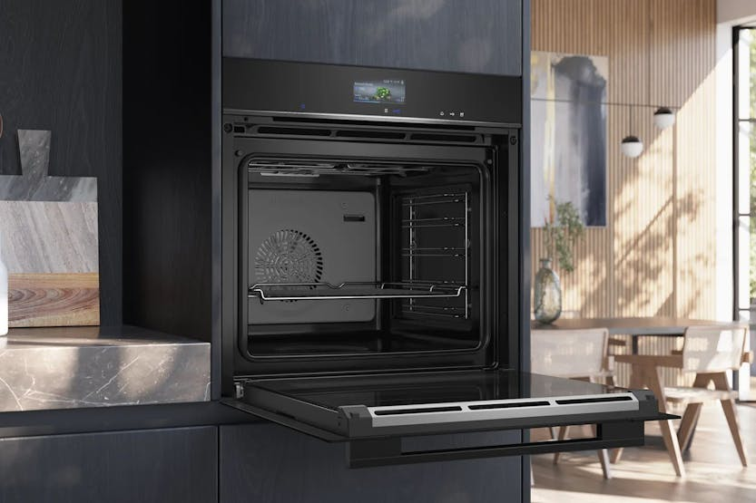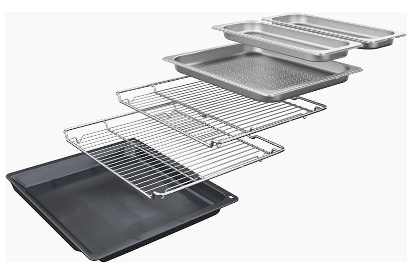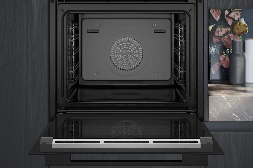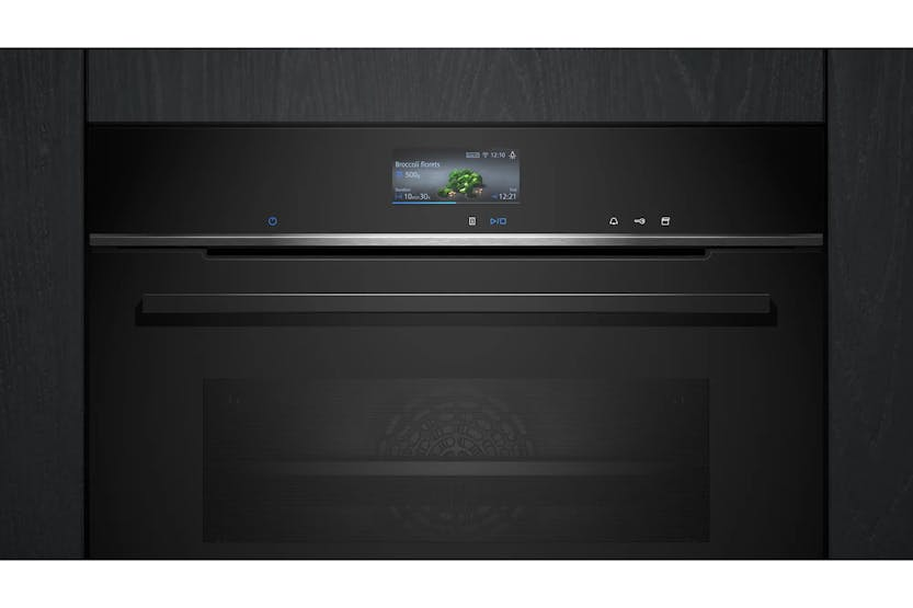 Description For Intuitive Smooth-Touch Navigation A user-friendly menu structure, smooth-touch navigation and a high-contrast, colour display make the TFT-Touchdisplay Plus the simple and satisfying control centre of your oven. The intuitive guidance through the extensive menu helps you to get the most from your oven. Simply Get the Perfect Oven Setting for Your Dish. You’re not always sure which programme is right for which dish? Simply tell your oven via your Amazon Alexa Voice Control device which dish you want to prepare. Or, alternatively, via the Home Connect App. The Oven Assistant will then suggest suitable settings or programmes and switch directly to your selection – a shortcut that really saves you time. To enjoy the Oven Assistant just connect your oven with your registered Home Connect account. Automatically Perfectly Cooked Meals Worried about overcooking your food? Pre-installed, automated baking and roasting programmes in your oven guarantee ideal preparation. Simply select your dish via the clearly arranged TFT-Touchdisplay and the oven’s sensors control the process. Select a result from various suggestions to suit your preferences or time. The oven automatically applies the correct settings and functions and turns off when your dish is ready, so you can relax while your food is cooking. More programmes can be downloaded in future – just connect your oven with your registered Home Connect account. Ecoclean: Cut Down on Oven Cleaning with the Ecoclean Coating from Siemens. Effortless cleaning thanks to a special coating on the rear wall. ecoClean disintegrates dirt and significantly reduces odours while you roast, grill or bake. The ecoClean material automatically regenerates every time you heat it – so it will last the entire service life of the appliance. For Fast Cleaning Dirt is Softened Beforehand by Vaporizing Soapy Water. It Can then be Removed More Easily Perfect for quick cleaning in between: With humidClean Plus, cleaning your oven is easier than ever before. Simply add a drop of detergent to 400 ml of water. Pour this rinsing solution onto the centre of the completely cooled cooking compartment floor. Just set the cleaning programme humidClean Plus and let the oven do the rest. As soon as the programme is finished, you can easily remove the soiling soaked up by the vapour with a dish cloth or a soft brush. Healthy Steam-Cooked Meals in a Little While Firm vegetables and legumes such as carrots, cauliflower or potatoes take a long time to cook and become tender. Thanks to the perfectly balanced combination of steam and heat, with fullSteam Plus, your food is actually prepared at up to 120 °C and up to 20 % faster than with fullSteam at 100 °C. At the same time, this process preserves the fresh colour of your ingredients. Perfect for quickly cooking healthy, colourful meals. Includes: 2 x Grid 1 x Universal pan 1 x Steam container Punched Size XL Size M Unpunched Product Features: TFT-touchdisplay plus – smooth-touch navigation for simple and intuitive operation Oven assistant with voice control – intuitively set the right programme Cookcontrol pro – excellent results, whatever the recipe or circumstances Ecoclean: Cut down on oven cleaning Humidclean plus - for fast cleaning dirt is softened beforehand by vaporizing soapy water. it can then be removed more easily Heat reflective glass Less time needed for preheating Home connect features: Remote diagnostics, remote monitoring and control Read More