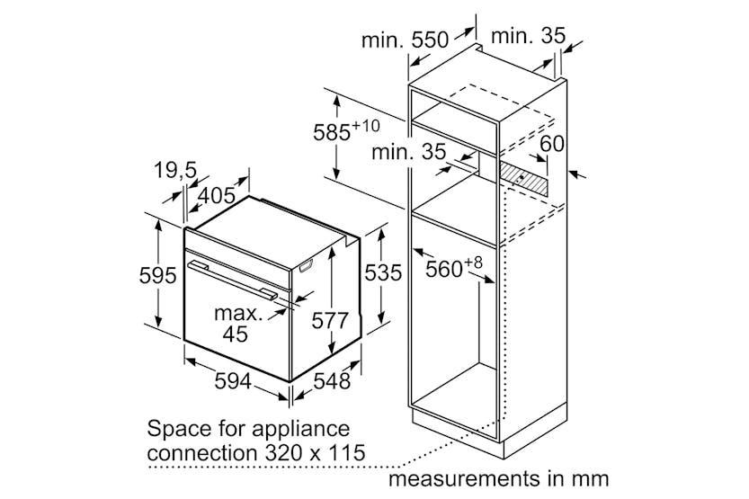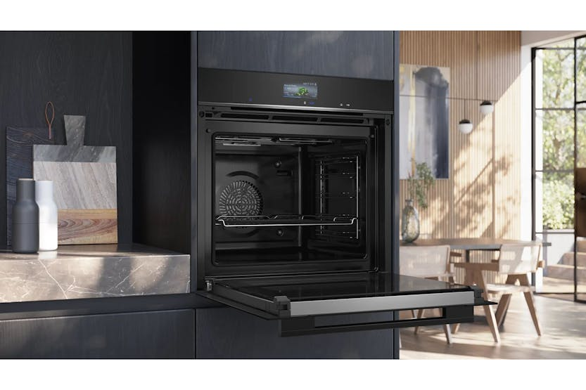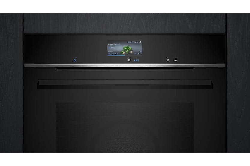 Description For Intuitive Smooth-Touch Navigation A user-friendly menu structure, smooth-touch navigation and a high-contrast, colour display make the TFT-Touchdisplay Plus the simple and satisfying control centre of your oven. The intuitive guidance through the extensive menu helps you to get the most from your oven. Simply Get the Perfect Oven Setting for Your Dish You’re not always sure which programme is right for which dish? Simply tell your oven via your Amazon Alexa Voice Control device which dish you want to prepare. Or, alternatively, via the Home Connect App. The Oven Assistant will then suggest suitable settings or programmes and switch directly to your selection – a shortcut that really saves you time. To enjoy the Oven Assistant just connect your oven with your registered Home Connect account. Effortless Oven Cleaning Hang up your oven-cleaning gloves for good. Thanks to the activeClean® function, your oven now cleans itself. Just remove any loose remnants, and the oven does the rest. At the touch of a button, all deposits from baking, roasting and grilling are turned to ash at high temperature. Use a damp cloth to wipe surfaces clean and you’re done. For Fast Cleaning Dirt is Softened Beforehand by Vaporizing Soapy Water. It Can Then Be Removed More Easily Perfect for quick cleaning in between: With humidClean Plus, cleaning your oven is easier than ever before. Simply add a drop of detergent to 400 ml of water. Pour this rinsing solution onto the centre of the completely cooled cooking compartment floor. Just set the cleaning programme humidClean Plus and let the oven do the rest. As soon as the programme is finished, you can easily remove the soiling soaked up by the vapour with a dish cloth or a soft brush. Enjoy Complete Control Over Your Oven Want to unlock the full potential of your oven? Just connect your oven with your registered Home Connect account (www.home-connect.com) to control it from anywhere and use digital services – even by voice with Amazon Alexa or Google Assist. Start and end cooking programmes, change settings and manage favourites – without being in the kitchen. Settings are synced between the app and oven, and you will get push notifications when the programme is done. Software downloads keep your oven up to date. Enjoy cooking on your own terms. Let Your Oven Do the Cooking Are you constantly checking your oven to see whether your food is cooked? Pre-installed, automated baking and roasting programmes in your oven guarantee the ideal preparation. Simply select your dish and let the oven’s sensors automatically control the process. You can even set the desired result from numerous pre-set suggestions. The oven automatically applies the right settings and turns off when your dish is ready. So you can relax and enjoy yourself while your food is cooking. More programmes can be downloaded in future – just connect your oven with your registered Home Connect account. Bake Evenly, Using Up to Four Levels at Once Getting even baking results used to be tricky, but not any more. With 4D hotAir, an innovative fan moves heat fast and powerfully through the oven’s interior. Place your trays on any rack, from one to four, and your dishes will come out perfectly baked and evenly browned. Or bake pastries on four levels at the same time, and enjoy excellent results. Speed Up Cooking Times The fastPreheat function heats the oven rapidly. With coolStart you can speed up the cooking of frozen food as there’s no preheating needed – your dish will be done in the same number of minutes you see on the packaging. Both intelligent functions save you precious time when you need fast results. Discover an Endless World of Delicious Recipes Searching for versatile dishes to match your lifestyle can be overwhelming. Now, however, you don't have to look far for the right recipe: Discover an inspiring selection of delicious recipes with Home Connect and recipe partner apps like Kitchen Stories and Foodfittery. Simply select a recipe and transfer the settings directly to your oven. Enjoy flexible meal preparation, and above all: delicious meals. To enjoy this feature just connect your oven to your registered Home Connect account. User Support Whenever and Wherever You Need It Installing a new oven can be overwhelming. With the Home Connect app, learning about your oven is as easy as preparing a frozen pizza. An interactive user manual helps you find solutions, tips and tricks to get the most out of your oven. If you have a problem with your oven, simply use remote diagnostics to clarify the next steps. Siemens Customer Service will access the appliance with your permission to find and fix the error. To enjoy this benefit just connect your oven with your registered Home Connect account. Includes: 2 x Combination grid 1 x Universal pan Product Features: TFT-Touchdisplay Plus – Smooth-touch navigation for simple and intuitive operation Oven Assistant with Voice Control – Intuitively set the right programme activeClean – The automatic, self-cleaning oven system humidClean Plus - For fast cleaning, dirt is softened beforehand by vaporizing soapy water. It can then be removed more easily Read More
