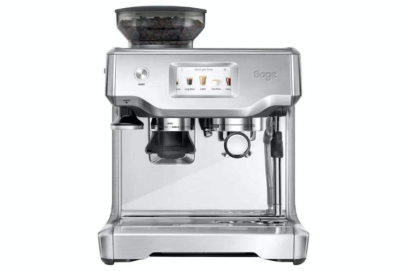 Description The Barista Touch creates third wave speciality coffee at home. The 250g built-in grinder automatically delivers the right amount of ground coffee on demand. Creating an aromatic, full-bodied experience. The ThermoJet heating system achieves the optimum extraction temperature, 93°C, in 3 seconds. PID temperature control ensures the nuanced flavour notes of sour, salt, sugar, roast and bitter are perfectly balanced. 9 Bar pressure is applied during the extraction process via our 15 Bar Italian pump. Delivering charming, caramel-coloured coffee. The steam wand automatically textures the milk to a velvety mouthfeel. Creating microfoam capable of pouring latté art. The intuitive touch screen display with 5 pre-programmed café drinks menu essentially places the barista in your home. So you can enjoy café quality coffee when and wherever you chose. With a 3 second heat up time, you go from bean to cup, faster than ever before. Includes: 54mm Full stainless steel portafilter Single and double wall filter baskets 480ml Stainless steel jug ClaroSwiss water filter Integrated tamper Razor precision dose trimming tool Cleaning kit Water hardness test strip Product Features: Hot water One/two shots Touchscreen display BPA free water tank Adjustable grind control Thermojet heating system Integrated coffee grinder Bean hopper capacity 250g 5 pre-programmed cafe favourites Programmable milk temperature and texture Automatic cleaning function for steam wand Create, save and name 6 customisable coffee settings