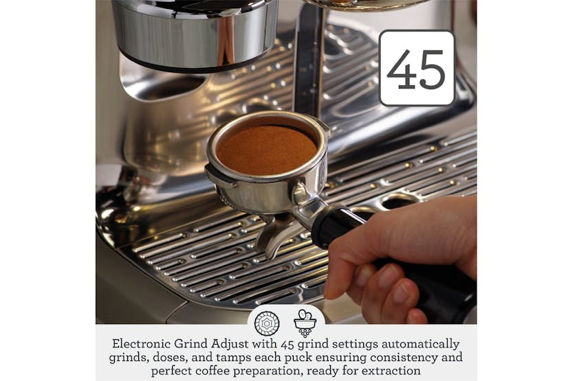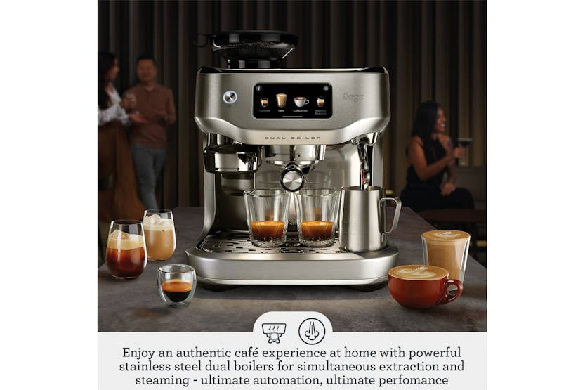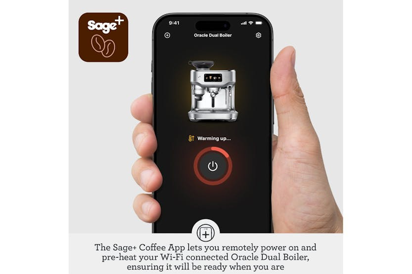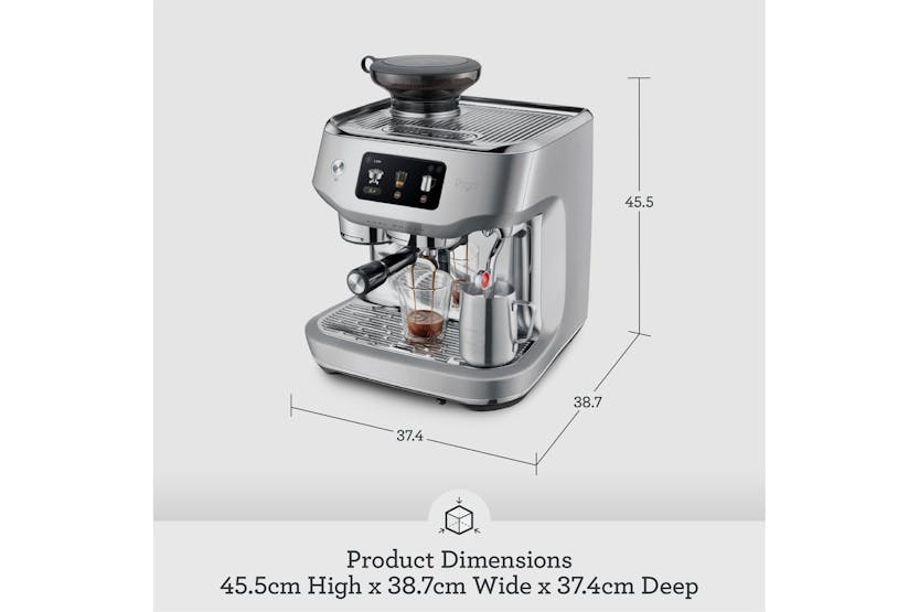 Description Meet Sage’s most advanced “Oracle” yet, complete with an even more impressive 5.7-inch touch screen! Choose between two different options: sit back and relax with the “Auto” mode, or take control using the manual mode instead. The dual stainless-steel boilers for simultaneous extraction and steaming help you enjoy authentic coffee flavours at home, while the new “Auto Dial-In” system monitors each extraction, and helps you effortlessly improve your next shot. To make it even better, “Auto MilQ” delivers silky microfoam hands-free, with settings optimised for different types of milk, and the “Sage+” smart app even lets you switch on or pre-heat your machine remotely. Introducing the Most Advanced “Oracle” Yet With more processing power and advanced sensors, you can now experience intelligent automation and seamless performance through the highly responsive 5.7-inch touch screen. Experience Third-Wave Specialty Coffee at Home, Made Possible by the 4-Key Formula This espresso machine incorporates the 4-key formula used by professional café machines. It’s designed to use the right dose of freshly ground beans, ensure precise temperature control and optimal water pressure, as well as create true microfoam essential for latte art. You’re only a touch away! Enjoy the Best of Both Worlds Simply select the “Auto” mode for automation at every stage, or go for a hands-on barista experience with the manual mode—your coffee, your way. Triple Heating System for Professional Results The dual stainless-steel boilers allow you to extract flawless espressos and steam milk simultaneously. Plus, the triple heating system features PID temperature control, helping you maintain the optimal extraction temperature with ease. Have Your Next Shot Improved Automatically The new “Auto Dial-In” system continually monitors each shot for under- or over-extraction, and adjusts grind settings automatically to help improve consistency and taste. Grind, Dose & Tamp Automatically “the Oracle Dual Boiler” grinds, doses, and tamps each puck automatically for flawless consistency. For even better results, the grind system boasts premium-quality “Baratza” burrs with as many as 45 grind settings. “Auto MilQ”: Hands-Free Microfoam + Alternative Milk Settings Enjoy silky-smooth microfoam whipped up using a professional cool-touch steam wand, with settings optimised for dairy, soy, almond, and oat milk. There’s adjustable temperature (from 40 to 75 °C), as well as 9 texture options for you to choose from too. Professional 58-mm Stainless-Steel Portafilter Savour full-bodied, rich, complex coffee using the ideal dose of 22 grams of freshly ground beans, delivered with the help of a professional-style 58-mm stainless-steel portafilter. “Sage+” Smart App The new “Sage+” smart app enables you to switch on and pre-heat your coffee machine remotely, ensuring that it will be ready whenever you are. What's in the Box: 1 x Hot steam wand Pressure gauge Product Features: Milk system type: Manual frother (professional) Number of groups: 1 Coffee bean tank: 350 g Number of bean containers: 1 Number of black coffees prepared at once: 2 Coffee temperature (levels): 11 PID temperature controller Built-in grinder