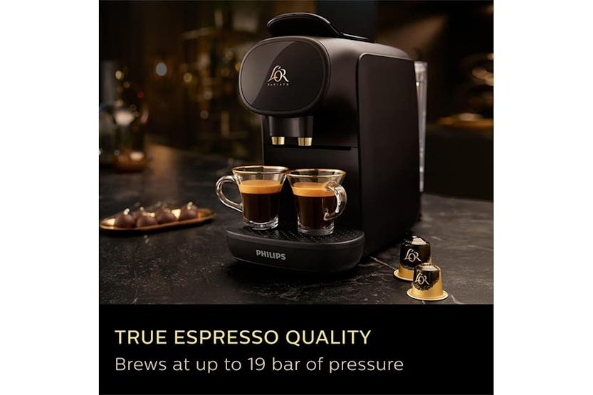 Description Online Only Make your home the new local favourite coffee shop with the Philips LOr Barista Sublime Capsule Machine in Piano Noir. This one-of-a-kind machine, designed by PHILIPS , brings the luxurious flavours and aromas of professional-grade espresso right into your kitchen. No longer do you need to queue for barista-quality drinks — the machine’s dazzling 19-bar pressure creates intense, rich cups of coffee that rival any café. With its unique capability to brew two drinks at once or a supercharged double espresso in one cup, you'll savour the convenience alongside the taste. Forged for use with the exclusive L'OR double shot capsules, this coffee impresario also accommodates L'OR single shot capsules and all Nespresso-compatible capsules. Finically your coffee experience is no longer under anyone else's control. Become the master of your coffee world as you personalise your brew volumes anywhere from 20ml to an indulgent 270ml. This Philips capsule machine prompts infinite creations for infinite pleasure. Whether you're in the mood for an intense Cortado at breakfast or an indulgent Lungo after dinner, get ready to satisfy your coffee desires on demand. You'll appreciate just how smart this coffee machine really is. It features PHILIPS'S Dual Capsule Recognition technology, ensuring the optimal settings for each coffee recipe. The unique feature automatically adjusts to the right size, assures a perfect brew with every click of a capsule. Specifications: Product Name: Philips LOr Barista Sublime Capsule Machine - Piano Noir Brand: PHILIPS Product Group: SMALL APPLIANCES Product Category: COFFEE MACHINES Product Class: POD COFFEE Adjustable Drip Tray for Different Size Cups Dual Capsule Recognition Automatically Selects Optimal Settings Assortments of 9 L'OR Espresso and L'OR Barista Capsules Included Compatible with your favourite coffee brands, expand your taste boundaries with the Philips LOr Barista Sublime Capsule Machine – time for an espresso, a double espresso, maybe even a lungo. Discover the delight in each sip, relieving some stress as you explore the wide coffee palette. All this from the comfort of your own home!