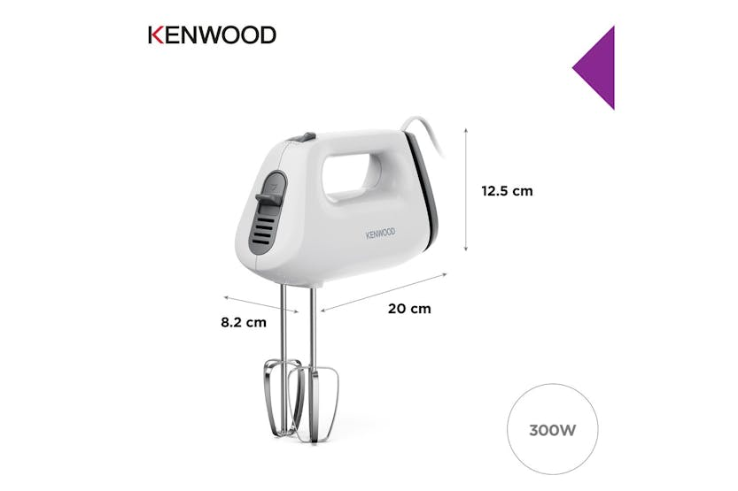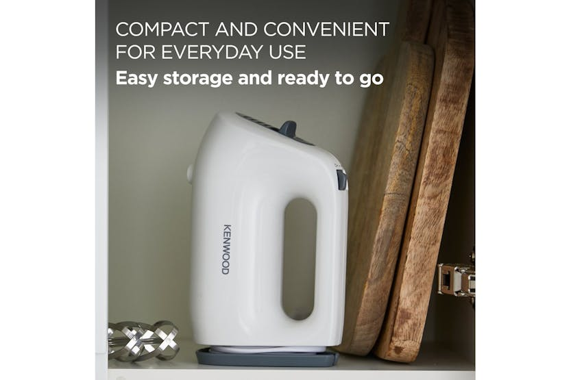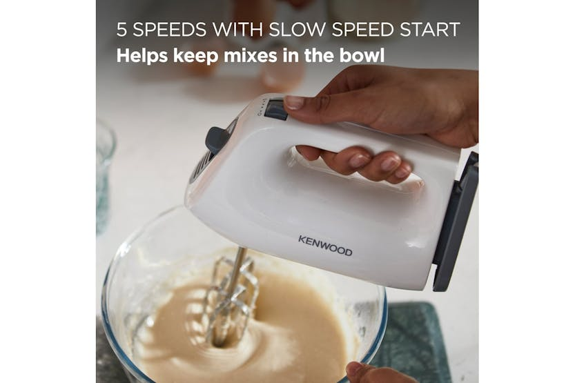Description Perfect for small mixes, single egg whites, and butter cream fillings, a hand mixer is a must for every baker. Compact and lightweight, QuickMix Lite is easily stored in a drawer when not in use and is ready to go in seconds when needed. Mix With Confidence With the SureEject beater release button, separate from the speed dial, accidental beater release while mixing is a thing of the past. Lighter Baking An ergonomic, lightweight design gives comfort and control when mixing, while the intergrated cord wrap makes for quick and easy storage. 300W Motor Power for every day bakes and smaller mixes. Never compromise on delicious results with even the smallest of baking tasks. Keep Mixes In The Bowl A fast burst of speed can send your flour billowing in the kitchen. WIth QuickMix Lite's slow speed start you'll quickly get to where you want to be, but reduce the mess when ingredients are driest. Stainless Steel Tools High quality stainless steel dual whisks give you excellent results and are made to last, delivering all of the quality bakers have come to expect from their Kenwood. Includes: Stainless Steel Beaters Read More