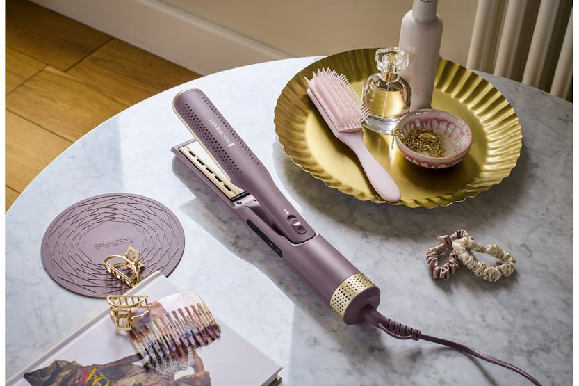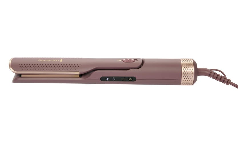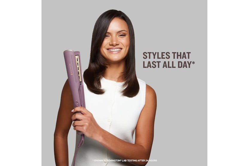 Description The Remington Airvive 2-in-1 Air Styler dries and smooths damp hair without damaging, extreme heat to help preserve your hair’s natural moisture for up to 24-hours [1]. Style dry hair with the ultra-smooth ceramic styling plates that release heat-activated micro-conditioners for all-day frizz protection [3], whilst Ionic Air helps to eliminate static and instantly cools your hair locking in 80% smoother results [2]. Check out the video: Airvive 2-in-1 Air Styler Become a frizz whisperer with the Airvive 2-in-1 Air Styler from Remington. Designed to be tough on frizz but gentle on your hair, this versatile 2-in-1 styler will transform your styling routine forever. With two styling modes, it can be used to dry and smooth damp hair, as well as straightening and styling dry hair. In Wet Mode, the concentrated stream of warm air combined with low-temperature styling plates dries and smooths your hair without extreme, damaging heat. Helps hair retain its natural moisture for up to 24 hours [1], locking in an ultra-soft feel. Switch to Finishing Mode to reduce the airflow and boost the temperature of the styling plates to smooth those pesky hard-to-style strands or refresh your style between washes. Ionised air helps eliminate static and instantly cools your hair while styling to lock in 80% smoother results [2]. The ultra-smooth plates with 10x more ceramic [3] content ensure the styler glides effortlessly through the hair while releasing heat-activated micro-conditioners for all-day frizz protection. Plus, you can create more than just straight looks - the actively cooled curved casing means you can also experiment with bouncy curls, flicks or waves with more control. Two Styling Modes with Ionic Air Technology Two styling modes mean that the Airvive 2-in-1 Air Styler can be used to both dry and smooth damp hair, as well as straighten and style dry hair. Fresh out of the shower? Use Wet Mode on hair that’s been towel-dried and combed through to remove any tangles. The concentrated stream of gentle, warm air works in combination with the low temperature of the styling plates to dry and straighten your hair in a single step without extreme, damaging heat. You'll love how the Airvive 2-in-1 Air Styler transforms and simplifies your styling routine and how your hair looks and feels afterwards. Drying and straightening simultaneously helps preserve your hair's natural moisture for up to 24 hours [1] locking in a soft feel. For pesky hard-to-style strands or to refresh your style between washes, switch to Finishing Mode. This converts the Air Styler into a heated straightener by reducing the airflow and boosting the temperature of the styling plates. While styling, Ionic Air flows through vents on the plates, distributing millions of ions to help eliminate static and instantly cools your hair to lock-in 80% smoother results [2]. Heat Activated Micro-Conditioners with New Anti-Frizz Formula Glide towards an effortlessly smooth style that lasts all day [3]. Remington innovative blend of conditioners is embedded within the microscopic pores of the ceramic that coats the styling plates. When the ceramic is heated the conditioners are activated by the change in temperature and released onto the hair on each pass, creating a barrier that helps to protect against humidity and other environmental factors that can cause frizz throughout the day. Actively Cooled Curved Casing The Airvive 2-in-1 Air Styler offers more than just one look. When using finishing mode, experiment with bouncy curls, flicks or waves with control and ease thanks to the curved casing that's actively cooled with the airflow. Check out the video: Don't Just Tame Frizz, Style It: Freya's Hair Story Notes: 1. Shown in Remington lab testing after 24 hours in Wet Mode 2. Vs naturally air dried hair in Remington lab testing in Finishing Mode. Results may vary by hair type 3. Vs Remington standard ceramic coating 4. Vs a standard Remington straightener 5. Participating markets only