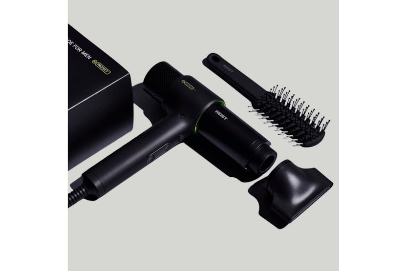 Description Flat hair? Thinning? Limp style? Fix It with Heist. Protect your hair, shield your scalp and power up your style. The Heist 3.0 isn’t just a dryer, it’s how you get that barber-fresh feeling from home. Built tough. Engineered for precision. Heist delivers great hair today and protects the future of your follicles. Made for All Hair Types Crafted in collaboration with top barbers, we’ve created the only dryer designed for men's hair types and styles. Heist 3.0 is a self-styling tool that protects and conditions hair - designed for daily use from home, the gym, or on the go. Hair & Scalp Guard The H-protect system as your thermal shield. Enhances Hair Condition Plasma coating technology ensures a smooth finish. Rapid Drying Under 60 Seconds Turbo airflow at 100,000 RPM dries 5x faster than standard dryers. Lightweight & Ergonomic Design Made to use at home, gym or barbershop. Fuller and Thicker Hair, Everyday. Before After What Makes Heist the Choice for Men Protect: H-protect System Smart controls with the h+ styling system that automatically adjusts to optimal heat settings, ensuring hair protection and promoting scalp health. Shield: Plasma Coating Tech Plasma coating conditions and hydrates hair by emitting 10 million positively and negatively charged ions. Style:powerful and Quiet Brushless Motor Volume maximisation that enhances hair thickness. Powerful airflow, low noise and low vibration. The H-protect System Your built-in thermal shield. The H-Protect System automatically adjusts heat and airflow, maintaining optimal temperature and windspeed for safe styling. It’s heat protection in cruise control. From Messy to Mastered in Minutes Proven to Restore and Strengthen Damaged Hair Clinical trials show damaged hair began to improve in 50 minutes, improved by 55.2% in 90 minutes with heist's ionic plasma coating technology. Product Features Thickens & enhances hair condition | plasma coating tech Protects hair & scalp | h-protect system Dries & styles fast | powerful 100,000 rpm brushless motor (220-240v~, 50/60hz) Shapes & styles | 3 airflow speeds & 4 temp control Pro-grade | 3m power cord with organiser (UK type G plug) Heat-resistant magnetic styling nozzle Heist vented brush and digital style guide