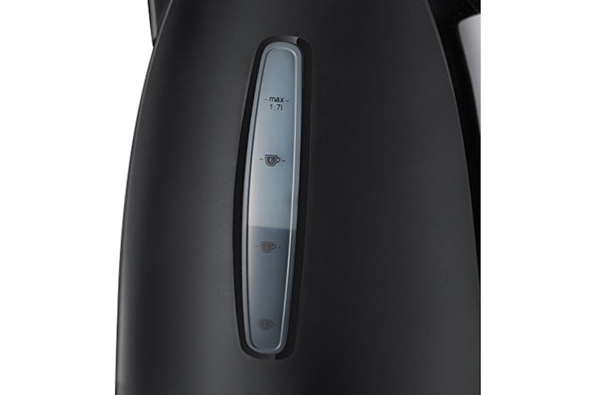 Description A Delicious Hot Drink in Under One Minute The textures black kettle combines a high gloss finish with matt accents for a premium feel meaning it will bring style to any kitchen work top. With a 1.7litre capacity jug, it’s big enough to make up to six cups, making it an ideal kettle for family homes but if you’re one for a sneaky brew the rapid boil feature means you can have a brew in hand in under one minute. The rapid boil feature also means that you can become more energy efficient and save up to 66% energy when making one cup. The kettle has a perfect pour spout so all of the water goes into the cup with fewer splashes and spills keeping your work surface mess-free. Dual Water Windows Check water levels without having to lift the lid and see how much is going in as you fill. Removable Washable Filter Featuring a removable, washable filter to keep your water clean and free from bits, which sits inside the spout and can be easily taken out, rinsed under the tap and replaced. Product Features: Push to open lid Perfect pour spout Save up to 70% energy Illuminating on/off switch Concealed heating element