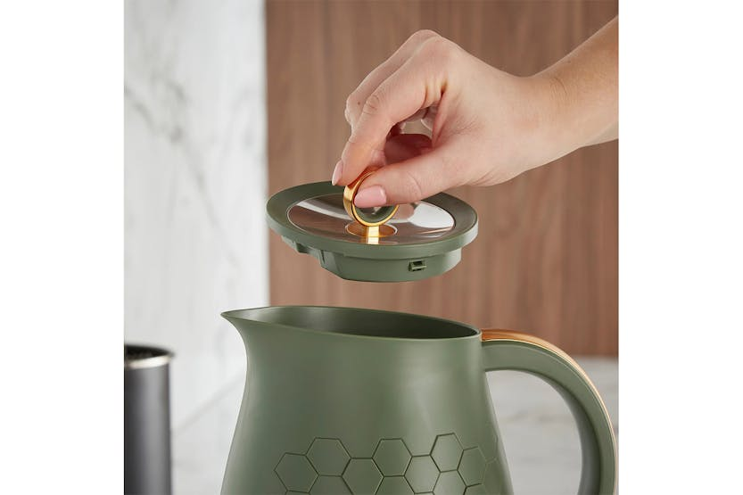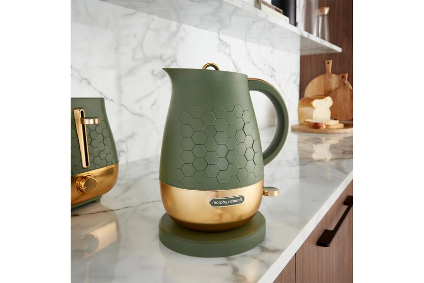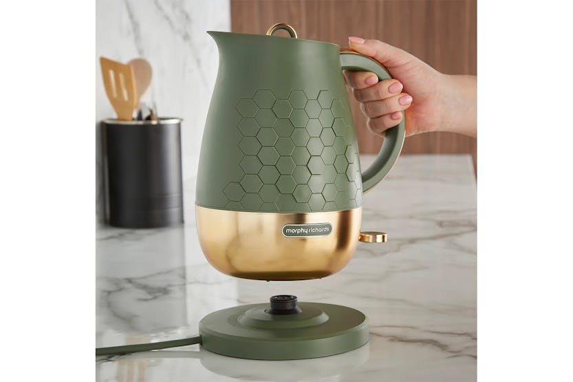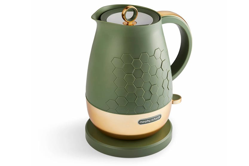 Description Discover the Morphy Richards Cassini 1.7L Jug Kettle! Boasting a sleek design with efficient functionality, this modern kettle delivers a standout choice for any kitchen. The Cassini range features a distinctive hexagonal design across the kettle, toaster, and microwave, creating a cohesive and modern aesthetic for your kitchen. The jug kettle offers a generous 1.7L capacity and powerful 3kW rapid boil element meaning this electric kettle quickly heats water for multiple cups, saving you time. The carefully designed spout ensures a smooth, splash-free pour every time, while the 360-degree base allows you to place the kettle back onto the base from any angle, perfect for left- or right-handed users! Additional features such as the built-in cord keeps countertops tidy while the convenient minimum fill, one-cup indicator helps you save energy by boiling only what you need. Perfect as a stylish addition to any modern style kitchen, the Cassini Jug Kettle is a practical and elegant kitchen essential Hexagonal Pattern With its bold hexagonal design, the Cassini collection infuses your kitchen with elegance and a sleek, modern edge. Available in three sophisticated shades: Olivine, Moonless Night, and Outer Space. 1.7L Capacity Kettle Thoughtfully designed with everyday moments in mind, the generous 1.7L capacity is perfect for families or when entertaining friends. Morphy Richards buyer carefully selected this ideal size to strike the perfect balance between practicality and performance. Product Features: 1.7L capacity: Boil for multiple cups in one go, perfect for families or when hosting friends 3KW Rapid boil element: This powerful element heats water quickly to reduce the waiting time for that much needed hot beverage Perfect pour spout: Designed for a precise, splash-free pour, giving you full control when pouring 360-degree base: Allows you to lift and place the kettle from any angle, making it easy from any direction Built-in cord storage: Maintain a clutter-free kitchen space and keep your countertops organised with the hidden cord storage Minimum fill indicator: The one-cup minimum fill marker inside the kettle helps you save energy by boiling only the water you need, reducing waste