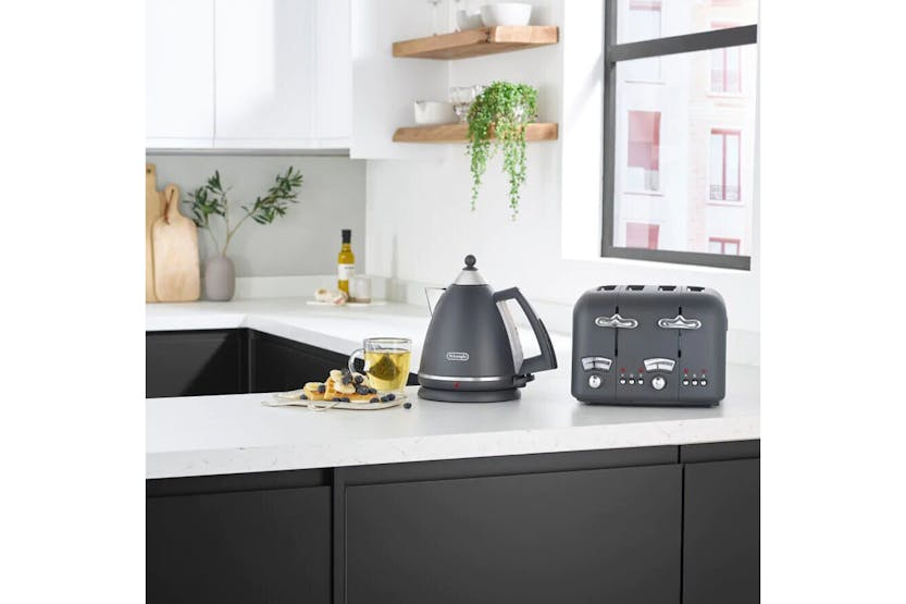 Description The De'Longhi Argento Silva electric kettle brings a stylish touch of nature into your home. Use effortlessly with the 360° swivel base and transparent water level indicator, and clean with utmost ease thanks to the removable limescale filter. The tactile matt finish with chrome design trims will bring luxury and class to any modern kitchen. Argento Silva Design Inspired by the unique colors and nuances of a natural landscape, bring the outstanding beauty of nature into your kitchen. Anti-scale Filter Fully removable and washable water filter to ensure the purity of freshly boiled water for your tea or coffee. Swivel Base The 360° rotating swivel base is fully detachable for a convenient cordless operation. Water Level Indicator The transparent tank allows you to easily check the dehumidifier performance and water level at any time. Product Features: Water capacity up to 1.7 liters Power-on light Pouring filter removable Water level indicator 360° Cordless operation