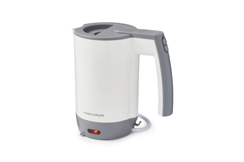 Description Online Only Travel Essentials Discover Morphy Richards travel range featuring the travel kettle and travel iron, designed to elevate your journey. The travel iron boasts a 40 ml tank, while the kettle offers a generous 0.5L water capacity for easy refills. Each item has been handpicked by Morphy Richards expert buyers to ensure you travel in style. Brew Anywhere Upgrade your travel experience with Morphy Richards lightweight travel kettle from Morphy Richards collection. With the convenience of being able to sip and go, you can enjoy your favourite drinks anywhere. Crease Free Clothes For Your Holiday Discover Morphy Richards travel collection, hand selected by Morphy Richards expert buyers to ensure you travel in style and convenience. Each item, including Morphy Richardslightweight travel iron, is perfectly sized to fit effortlessly into your suitcase, making it an essential companion for any trip. Morphy Richards compact travel kettle is the ideal solution for small kitchen set-ups, caravans, camping trips, travelling, guest bedrooms and more! Not to mention, with its compact 0.5L water capacity its lightweight design also makes this kettle a great choice for those with arthritis or similar ailments. Coupled with two tea cups, this small electric kettle provides just the right amount of water for a quick cup of tea or coffee, without taking up too much space. Functionality and safety are paramount here at Morphy Richards, so we are pleased to confirm that this jug kettle is constructed with top-tier features like auto-switch off at boil and boil-dry protection, while the hinged lid makes filling and cleaning a breeze. So, whether you're setting up a small kitchen, looking for a small bedroom kettle for a guest room, or need a reliable travel companion, this mini kettle delivers on both functionality and portability. 0.5L Water Capacity Makes 2 servings and perfect for making a quick cup of tea or coffee without using excessive energy or space. Lightweight design also makes this kettle a great choice for those with arthritis or similar ailments. 2x Tea Cups Included Ensuring you have everything you need for a convenient tea or coffee break while on the go. Jug Kettle Sleek and easy to handle, offering a comfortable grip and efficient boiling. Auto-Switch Off at Boil Turns off once the water has reached boiling point, preventing overheating and saving energy. Boil-Dry Protection Automatically shuts off the kettle if there's no water inside, safeguarding the appliance from potential damage. Hinged Lid Allows for easy filling and prevents spills, making the kettle user-friendly and safe to operate. Product Features Wattage: 900-1080W