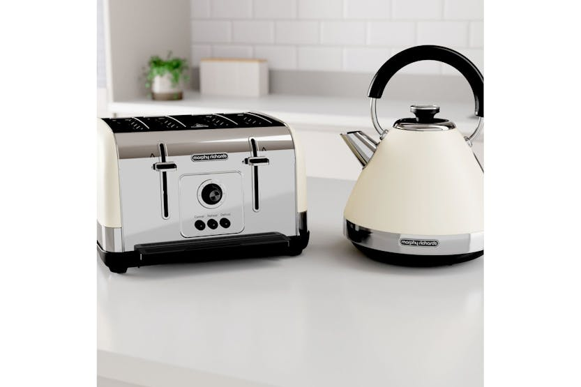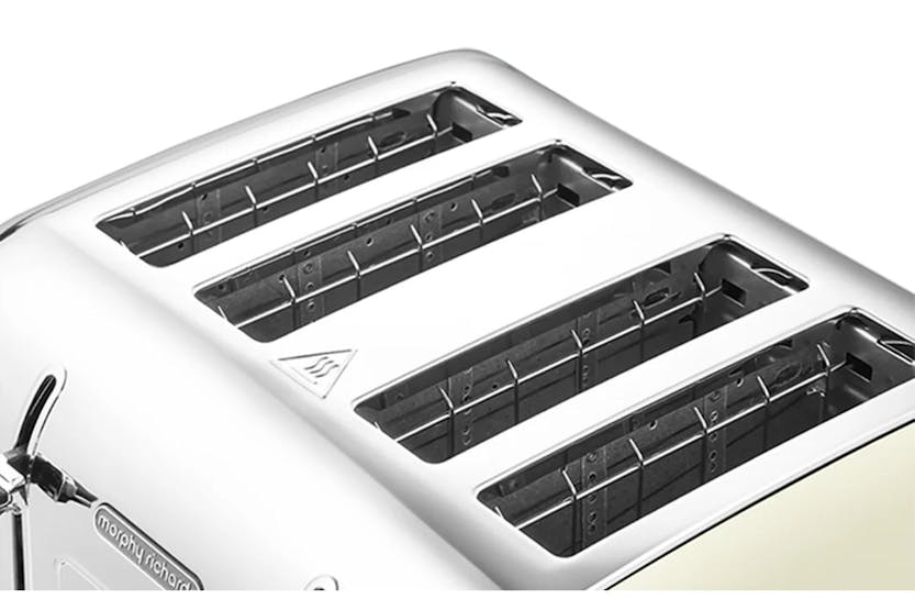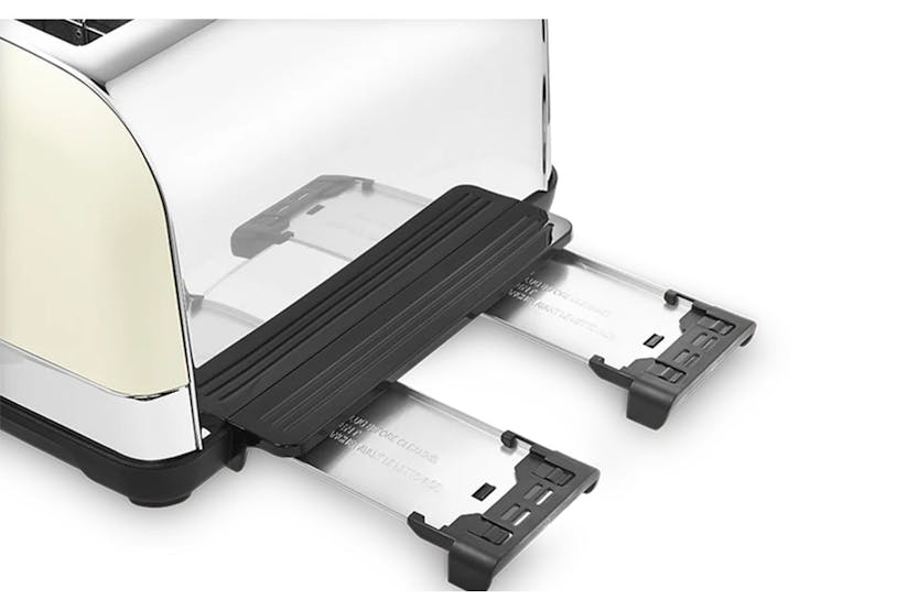 Description Online Only Enjoy freshly toasted bread, exactly the way you like it with the sleek and trendy, Morphy Richards Venture 4 Slice Cream Toaster . Emphasizing a fusion of retro styling and modern features, this cutting-edge small appliance breathes life into the phrase 'kettle and toasters' category making it a much-desired piece for every creative and practical Irish home. With four toasting slots, this state-of-the-art cream toaster provides ample space to brown as many as four slices at once. The incorporation of dual controls allows you to prepare your toast at different browning levels concurrently. The toaster also includes easily adjustable settings, tailor-made for reheating a cold slice or toasting bread right from the freezer. On the versatile variable width slots? They're perfect for accommodating a variety of bread sizes, thicknesses and types, giving you unbeatable flexibility. The toaster's inbuilt high lift levers also makes the removal of each slice as easy as pie! The Morphy Richards Cream Toaster isn’t just practical but boasts a look that will effortlessly compliment any kitchen's decor. Its shiny classic retro design flows seamlessly with its impressive, powerful 1800W element that brings a faster toasting experience. An additional accessory is a cord tidy, created to help you keep your work surfaces clutter-free. Have concerns about maintaining clean worktops? This modern toaster includes a removable crumb tray to catch crumbs from toasting bread, ensuring your tidy countertops stay that way. From variable settings to tidy features and an elegant design, this Morphy Richards Venture 4 Slice Cream Toaster is your dream kitchen appliance for optimal Irish toast-rich breakfast experiences! Salient Product Features: Seven variable browning controls for toast the way you like it Settings to reheat a cold slice or toast from frozen High lift levers for easy removal and cord tidy feature Removable crumb tray for cleaner worktops