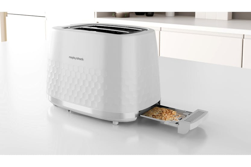 Description The perfect fusion of style and functionality, the Morphy Richards Hive Patterned Plastic White 2 Slice Toaster is an essential addition to every modern Irish kitchen. Crafted with 850W of power, this high-performance toaster offers up consistently perfect toast, tailored exactly to your liking with the variable browning control. Say goodbye to the inconvenience of manual de-crumming, as this innovative appliance boasts a removably crumb tray for fuss-free, effortless maintenance. Busy mornings are made simpler with the Morphy Richards toaster. Whether you’re running out the door or sitting down to savour your breakfast, create slices just the way you like it - hotly toasted from frozen or gently warmed from cold. Its built-in cord tidy ensures your kitchen remains uncluttered and sleekly streamlined, matching the contemporary design of the toaster itself. Designed for the progressive Irish household, the Morphy Richards toaster would fit perfectly amongst other small appliances in your kitchen. Don’t settle for subpar toast. Stamp elegance and high quality onto your regular toast routine with the Morphy Richards Hive Patterned Plastic White 2 Slice Toaster - an encapsulation of sophistication and efficiency within one beautiful appliance. Dressed in a refined white hive pattern, this toaster isn’t just about amazing functionality. Elevate your kitchen aesthetics whilst enjoying the convenience and quality it offers. Master the art of perfect toasting and simplify your life in the kitchen with this must-have from Morphy Richards. Sit within our Kettles & Toasters category, this modern Toasters class product is a must-have addition to your modern kitchen appliance collection. Experience toasting excellence today with the Morphy Richards Hive Patterned Plastic White 2 Slice Toaster – the smart choice for the Irish kitchen. Product Features 850W power for perfect toasting, Variable browning control to customize your toast, A removable crumb tray for easy cleaning, Cord tidy to keep your kitchen neat and organized Reheat function for breathing new life into cold slices Defrost function to go straight from freezer to toaster.
