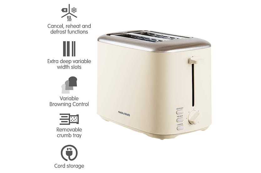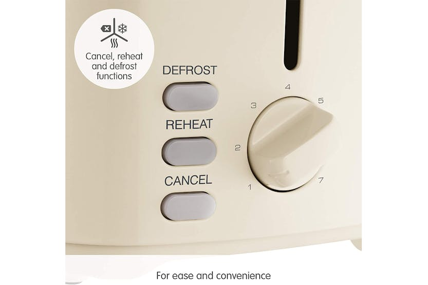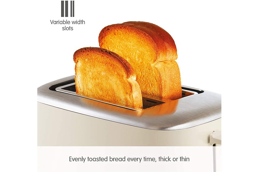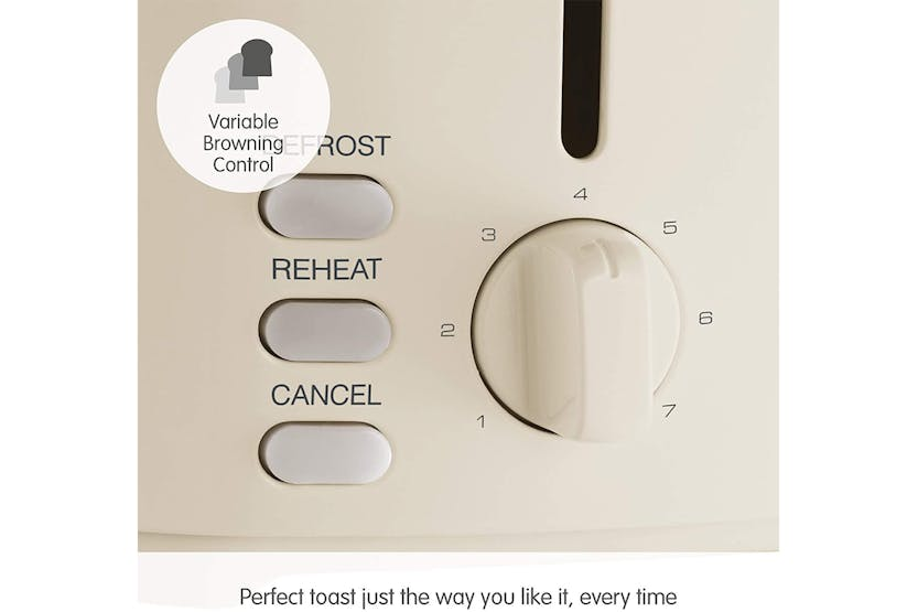 Description Check out the video: The Equip cream stainless steel 2 slice toaster has a stylish, modern look designed to suit any kitchen and is available in 4 stunning colours. Easy to operate with variable browning control ensuring you get perfect toast, to your taste, every time. Defrost and reheat settings mean your new toaster will cater for every occasion, the removable crumb tray ensures that cleaning up is easy and cord tidy allows you to neatly store your toaster away. Cancel, Reheat and Defrost Settings Easily toast from frozen, reheat forgotten toast and cancel the program if needed, with multiple functionality. Variable Width Slots The Equip toaster can evenly toast a range of bread thicknesses with ease, thanks to the variable width slots. Variable Browning Control Adapt the settings according to your taste, ensuring perfect browning every time. Removable Crumb Tray Removable trays collect crumbs from everyday use, and allow you to efficiently dispose of them without making a mess. Cord Tidy The base cleverly conceals any excess wire, so that your kitchen side is always mess-free. Product Features: Hi-Lift Variable width slots Removable crumb tray Variable browning control