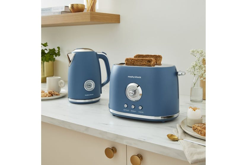 Description Online Only Looking to add a splash of style to your mornings? The Morphy Richards Colour Boutique 2 Slice Toaster invites a breathe of air into your routine with its eye-catching Thunder Blue Matt Steel finish. This petite appliance is a sure hit, combining a retro style with superior functionality that fits neatly on any counter space - perfect for an Irish kitchen setting. Never again settle for over-browned toast or frozen bagels with the variable browning control and cancel, reheat, and defrost functions. This chic toaster effortlessly caters for every breakfast preference, making your morning routine smoother and zippier. Plus, quick mornings are no longer chaotic thanks to the sumptuously convenient removeable crumb tray and cord storage. Morphy Richards' attention to detail simply accentuates the appeal of the Colour Boutique line, granting you both charm and practicality from a toaster. Constructed of resilient Matt Steel, this durable toaster assures you of the long-lasting and reliable service that MORPHY RICHARDS has been celebrated for while infusing a vintage appeal to your kitchen. The rich Thunder Blue exudes an air of sophistication and serenity, aligning perfectly with the relaxed rhythm of an Irish morning. Harnessing a powerful 850w heat element, this 2 slice toaster serves up perfectly toasted bread the way you love every time. Product Specification Colour: Thunder Blue Body Material: Matt Steel Power: 850 W Type: 2 Slice Toaster Removable Crumb Tray: Yes Cord Storage: Yes Controls: Button & Dial This modern yet classic toaster by Morphy Richards serves not only as a functional small appliance but also as an iconic piece for your kitchen design. The Colour Boutique 2 Slice Toaster Thunder Blue Matt Steel offers, in addition to its high end toasting performance, a visually striking piece to grace your counter. Unveil the perfect balance between brilliance, sophistication and top notch function with this exquisite kitchen accessory today.